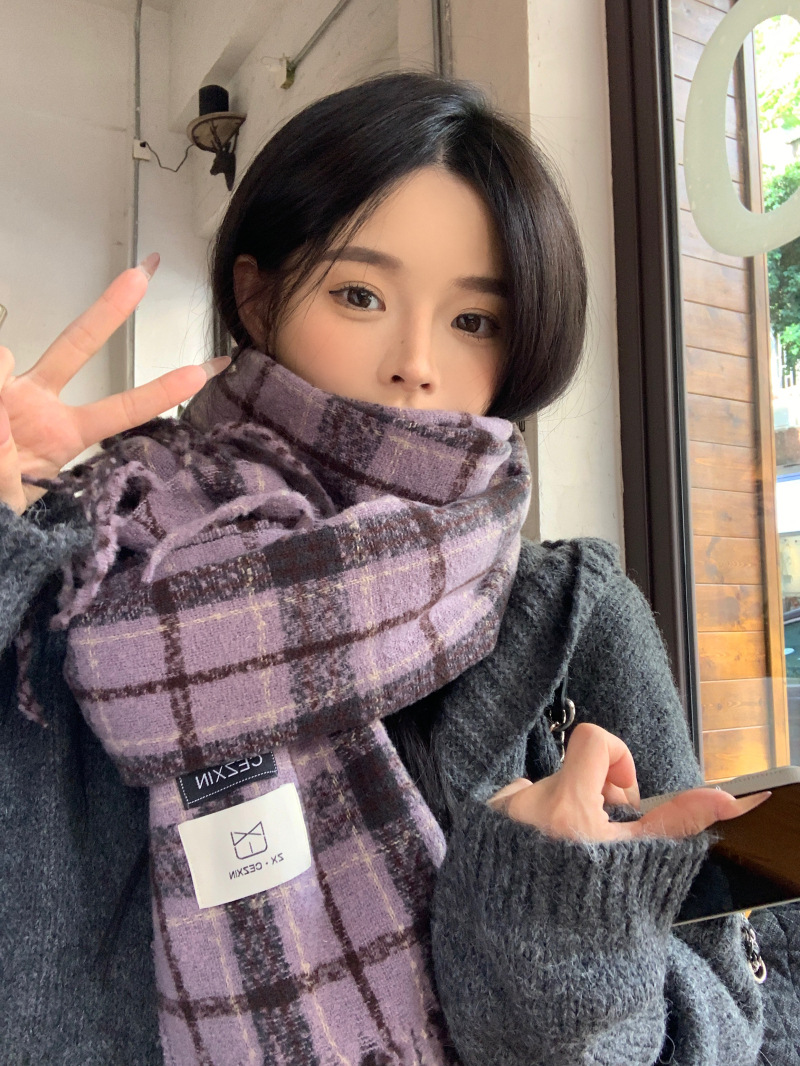 모헤어 스카프 여성의 겨울 2024 새로운 스타일 목도리 스카프 커플의 격자 무늬 올 매치 여행 따뜻한 생일 선물