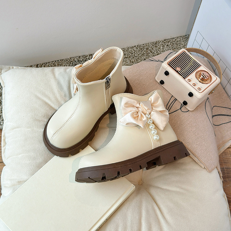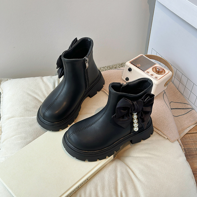 여자 작은 가죽 부츠 2024 봄과 가을 새로운 어린이 부츠 패션 지퍼 라운드 발가락 초등학생을위한 올매치 싱글 쇼트 부츠