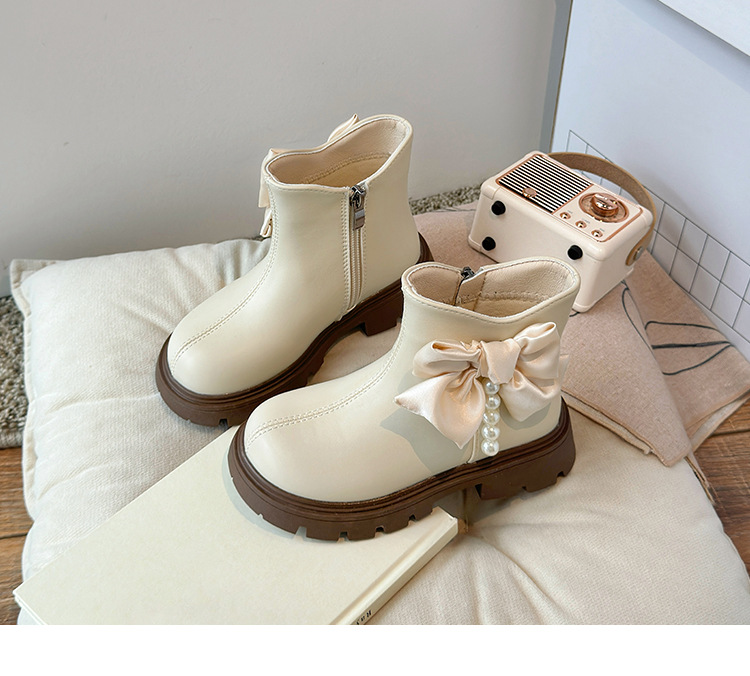 여자 작은 가죽 부츠 2024 봄과 가을 새로운 어린이 부츠 패션 지퍼 라운드 발가락 초등학생을위한 올매치 싱글 쇼트 부츠스토어 가기