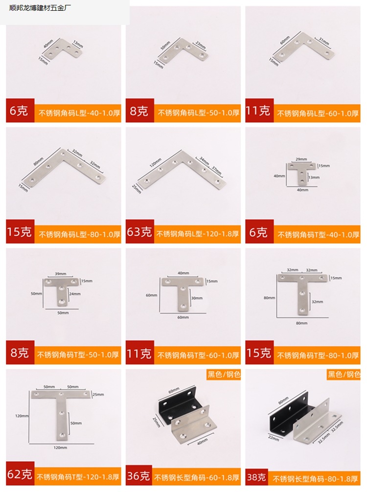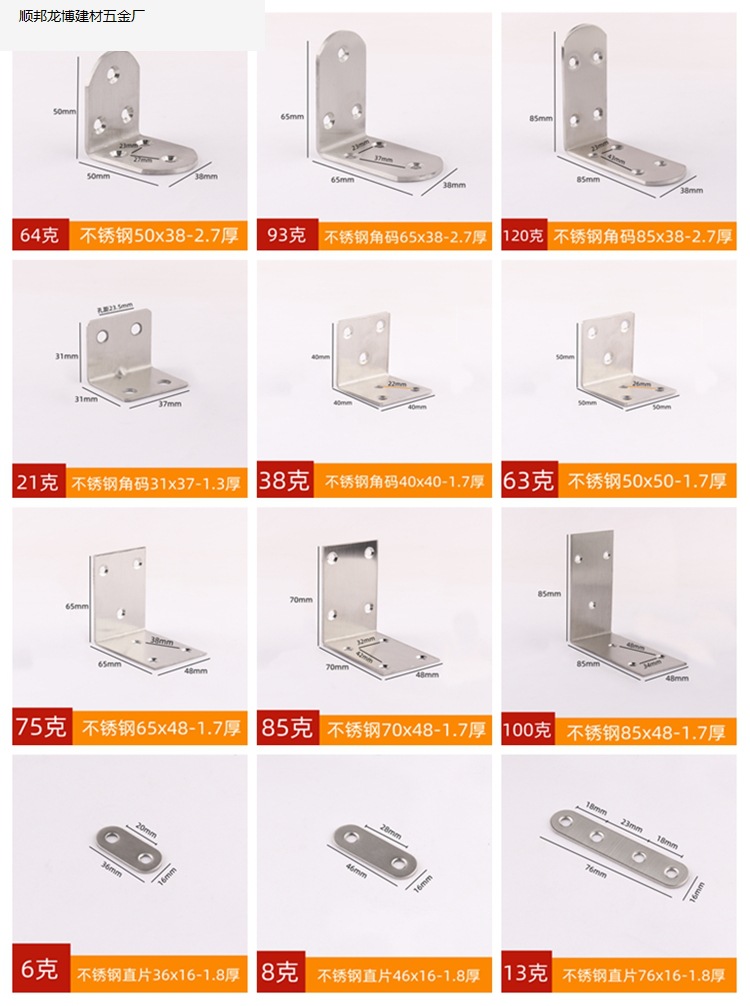 두꺼운 스테인레스 스틸 각도 코드 고정 조각 가구 커넥터 L 자형 라미네이트 브래킷 90 도 직각 철 삼각형 브래킷.