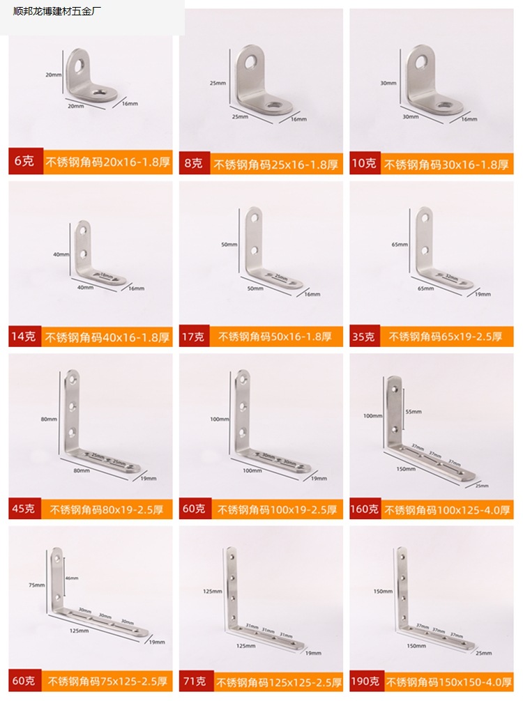 두꺼운 스테인레스 스틸 각도 코드 고정 조각 가구 커넥터 L 자형 라미네이트 브래킷 90 도 직각 철 삼각형 브래킷.스토어 가기