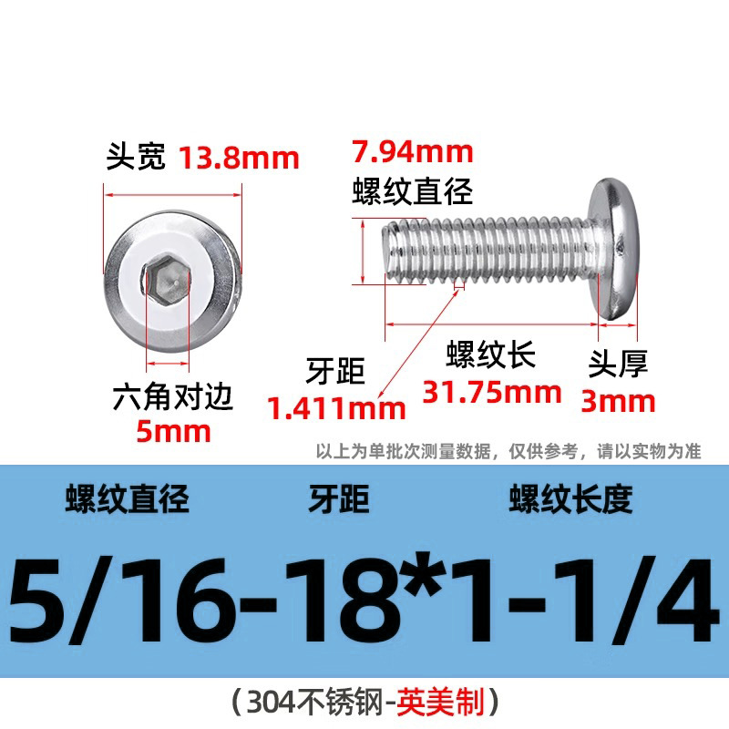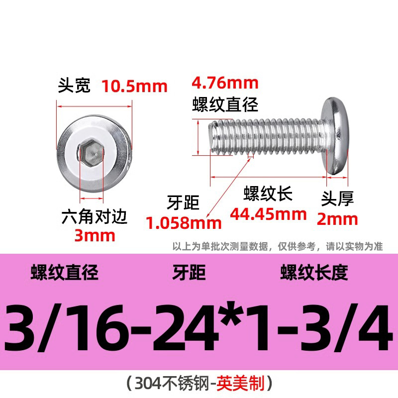 Anglo-American 304 스테인레스 스틸 거꾸로 가장자리 육각형 소켓 스크류 Hex 헤드 가구 스크류 볼트 패스너 GB스토어 가기