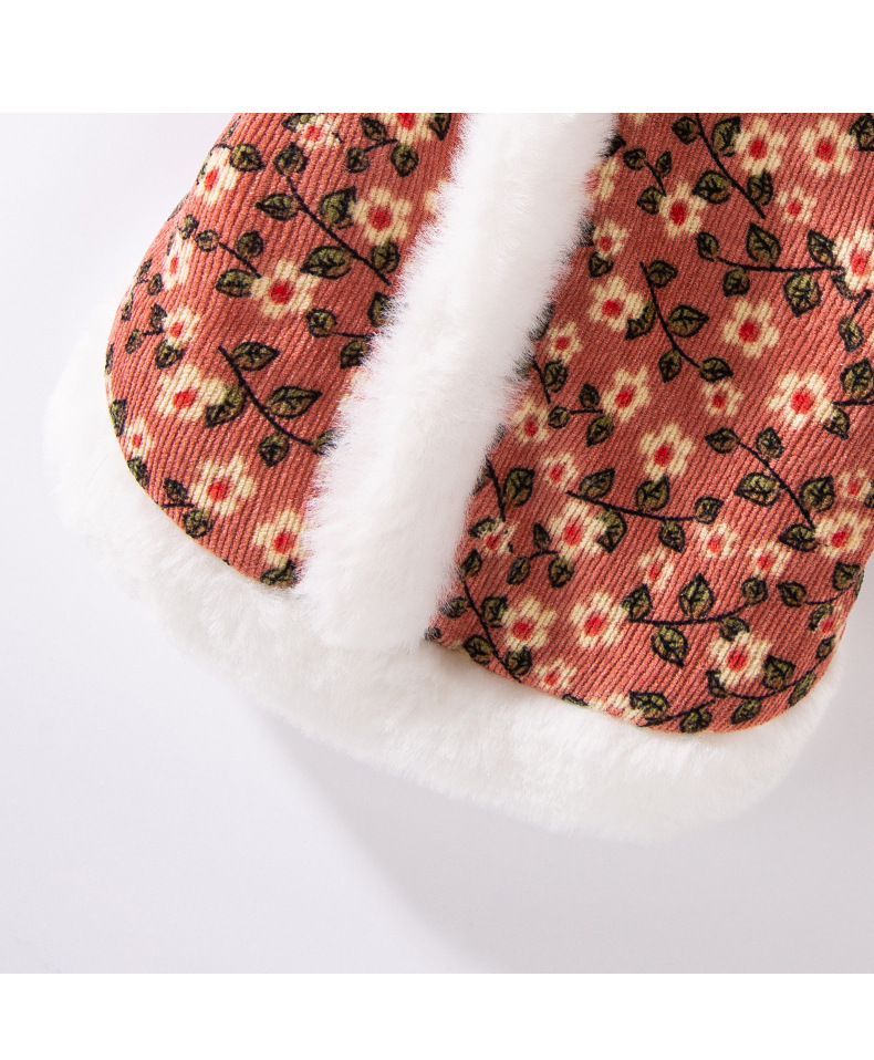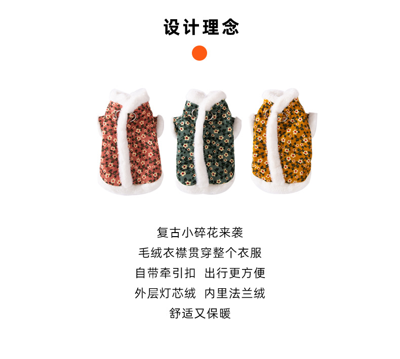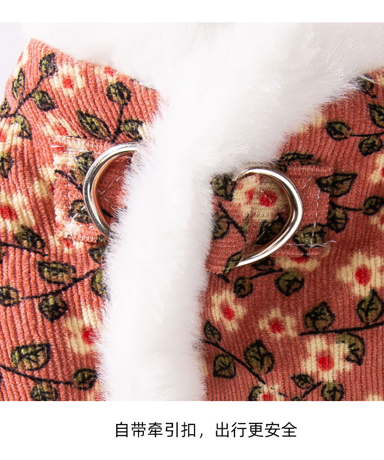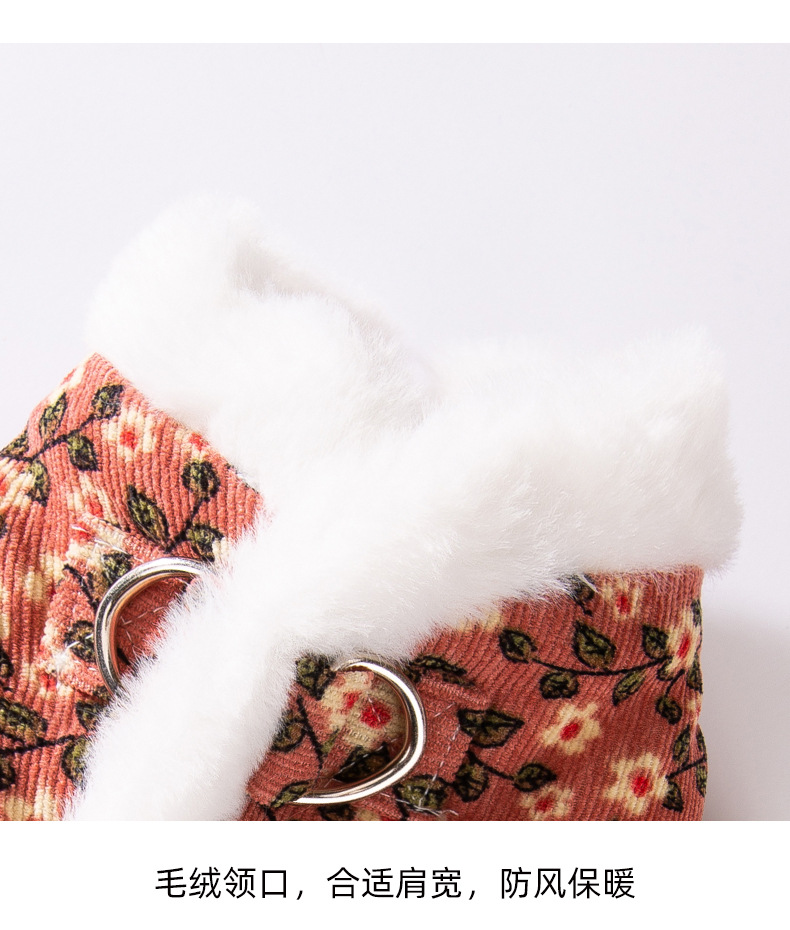 빈티지 큰 꽃 코트 두꺼운 따뜻한 개 옷 작은 개 겨울 견인 양다리 옷 비촌 애완 동물 의류스토어 가기