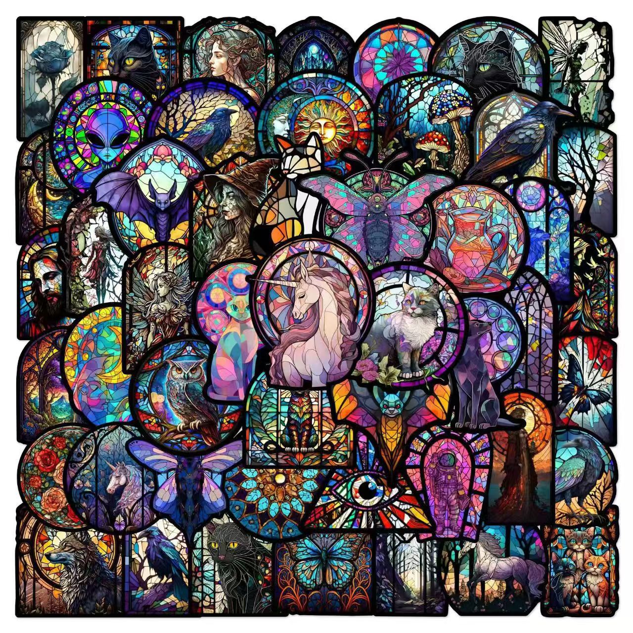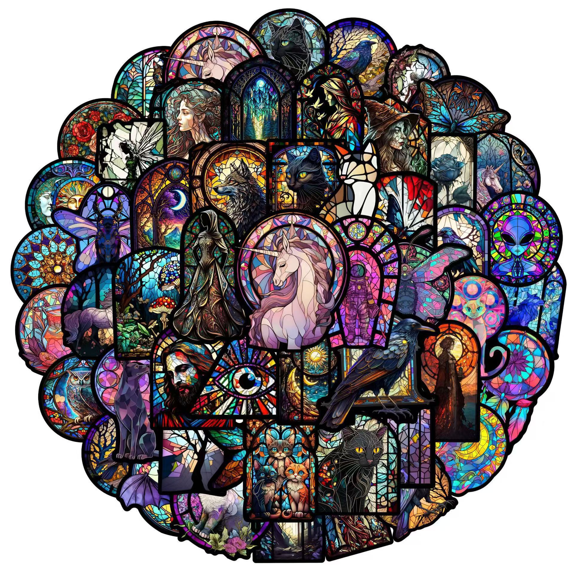 50 다채로운 패션 브랜드 컬러 유리 바람 미적 스티커 장식 자동차 노트북 문구 방수 스티커 도매