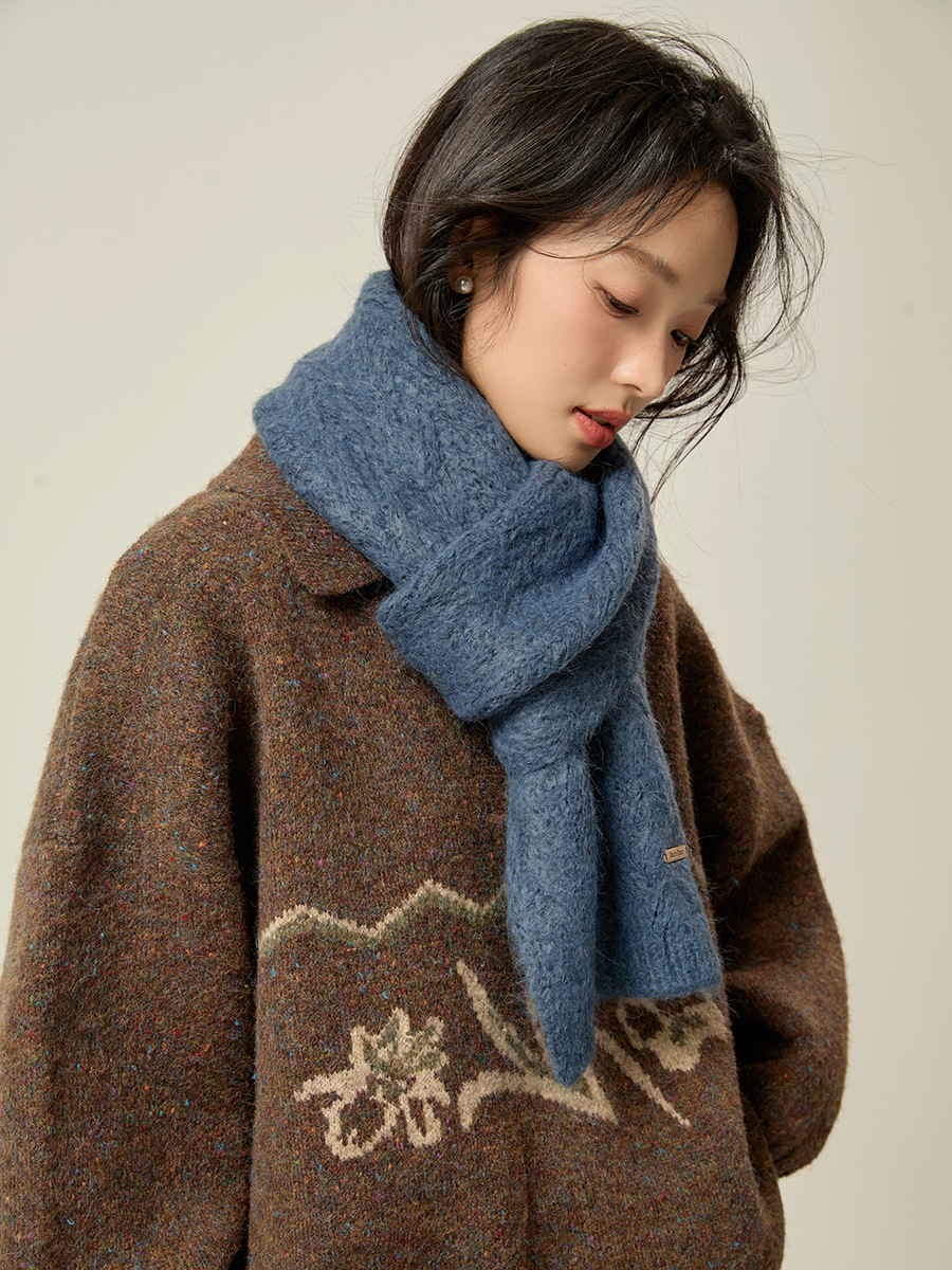 하이 퀄리티 알파카 헤어 엠보싱 크래프트 겨울 따뜻한 스카프 여성 한국 달콤한 솔리드 컬러 메일러 두꺼운 스카프스토어 가기