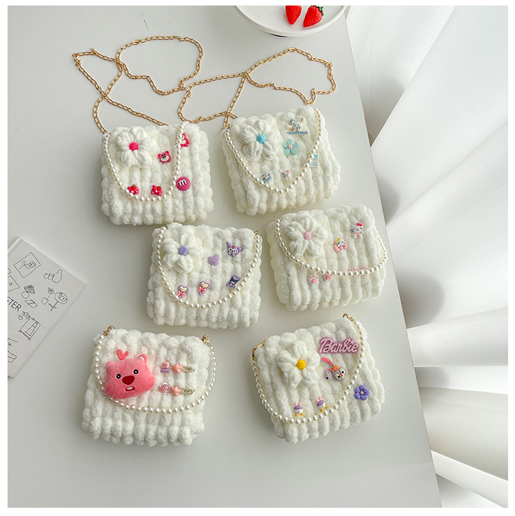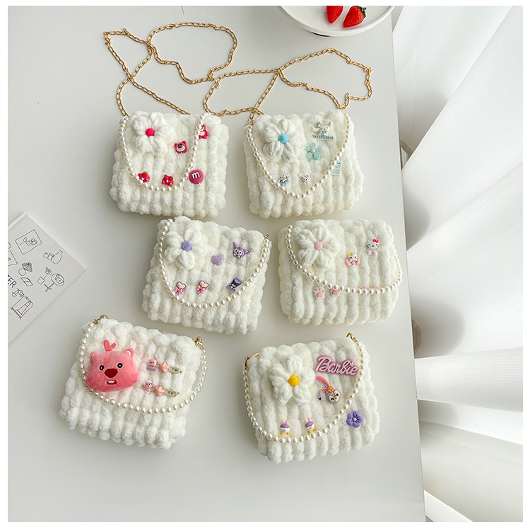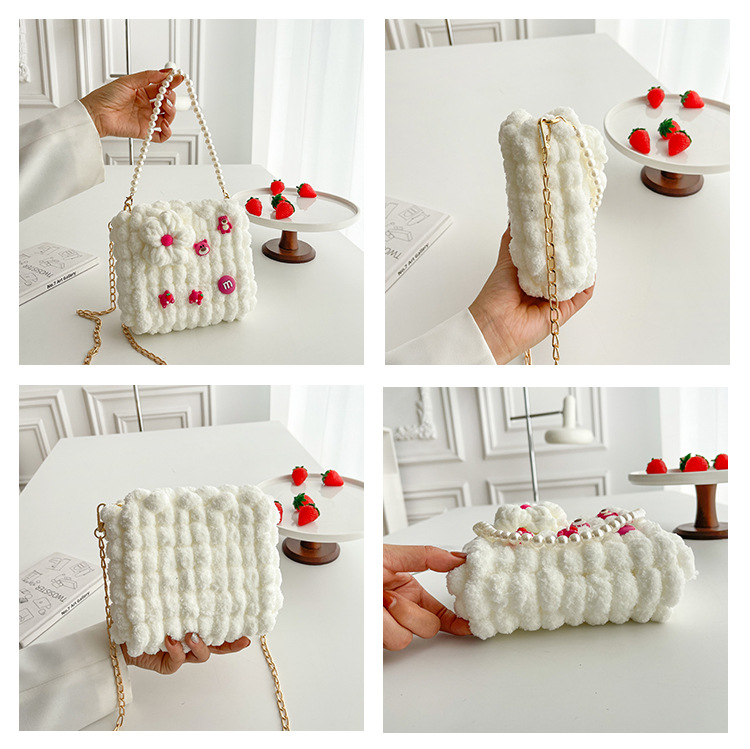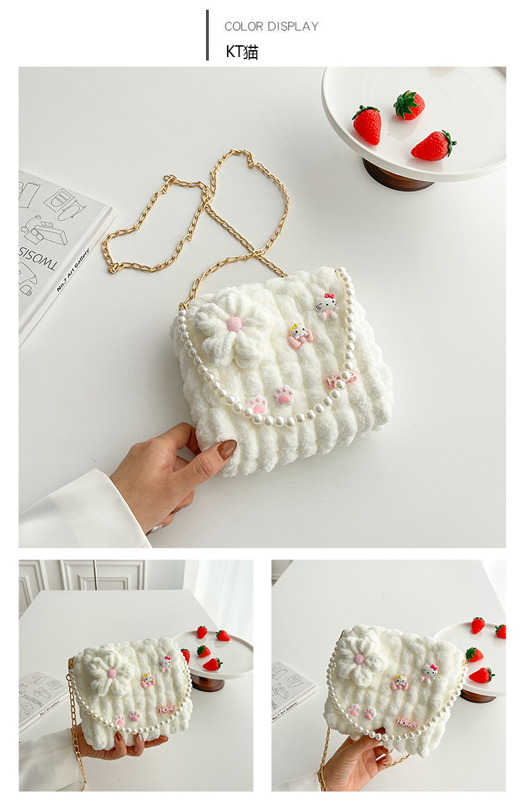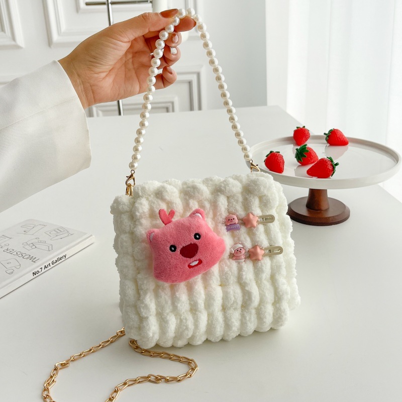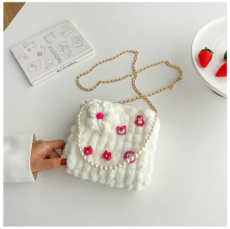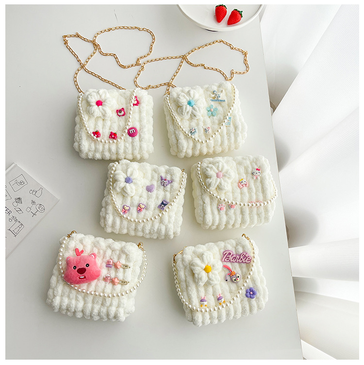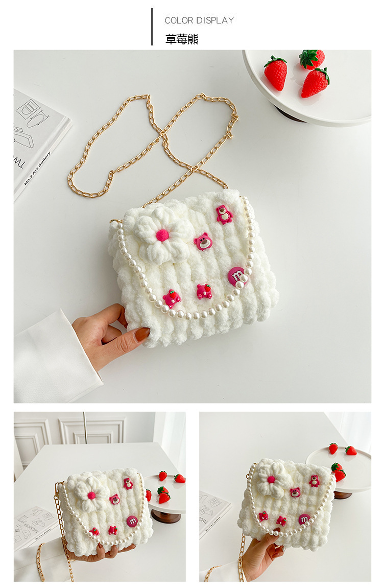수제 짠 가방 DIY 소재 가방 수제 양모 완성 된 어린이 귀여운 크로스 바디 가방 여성 여자 친구 선물