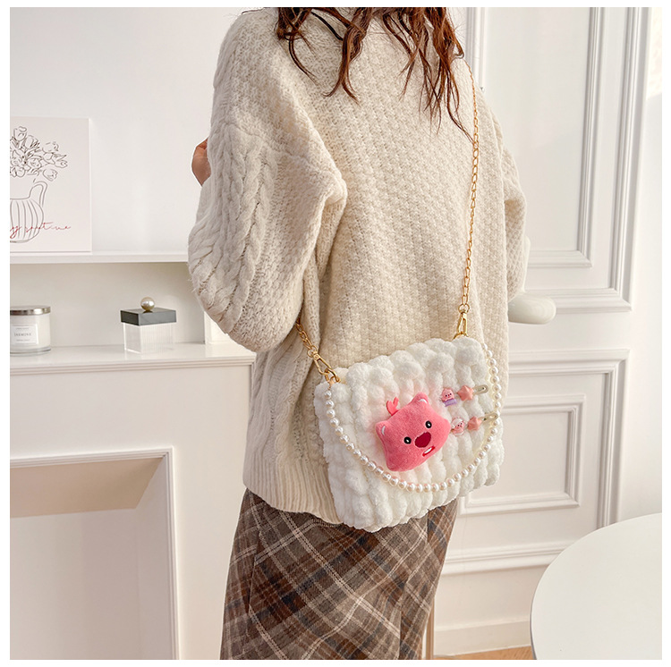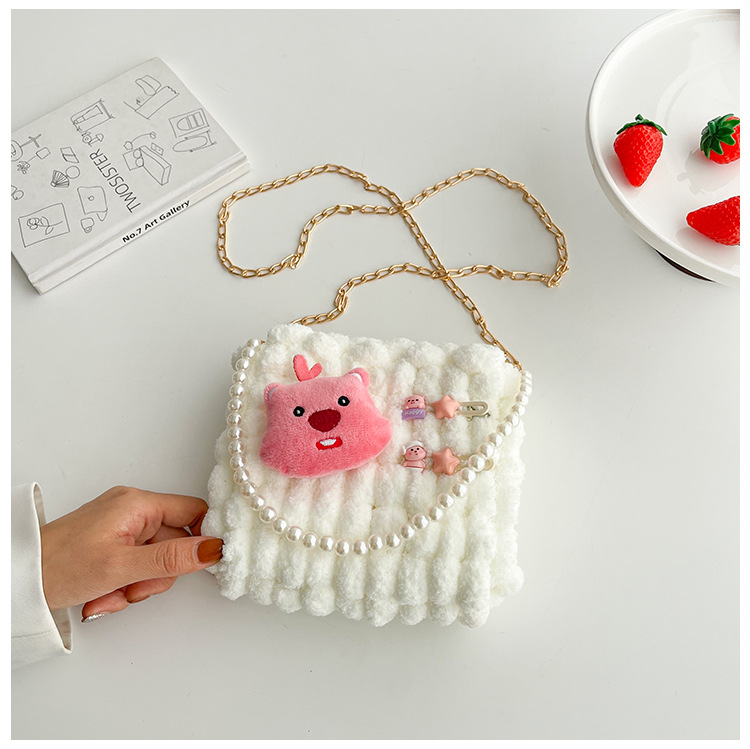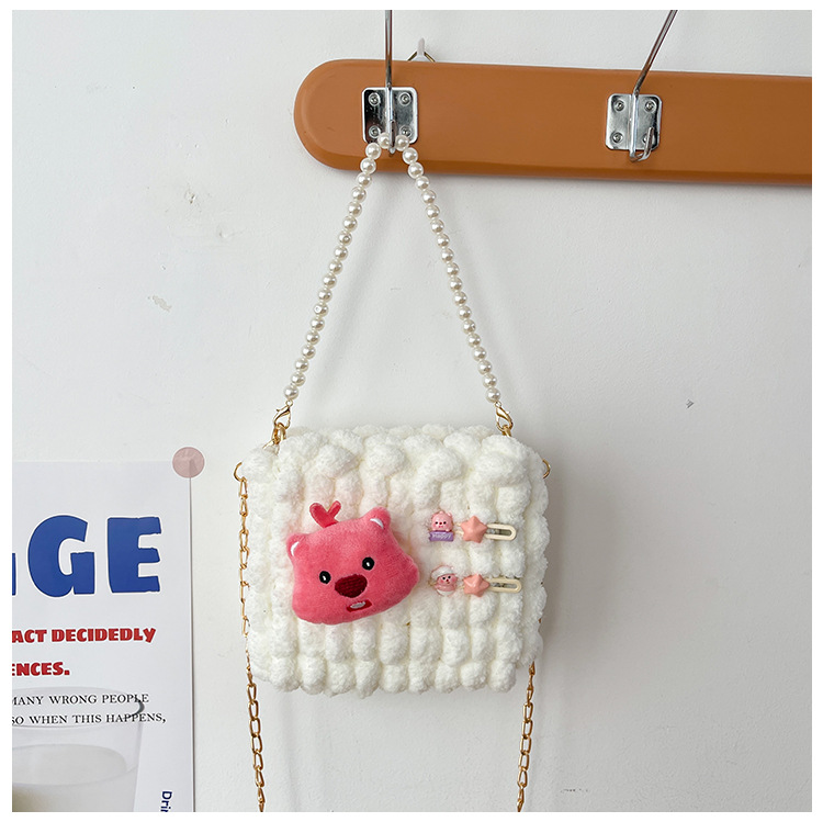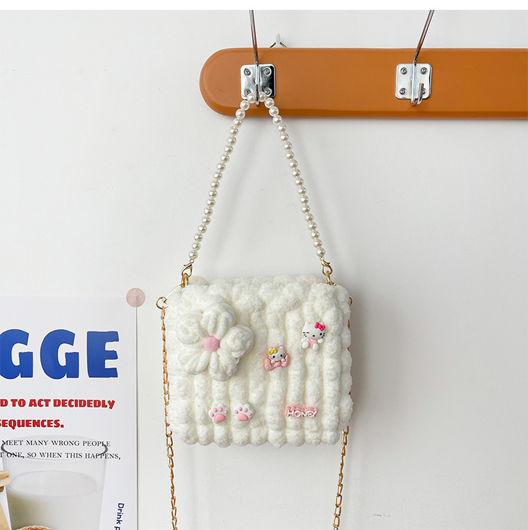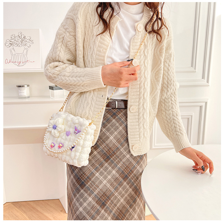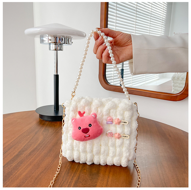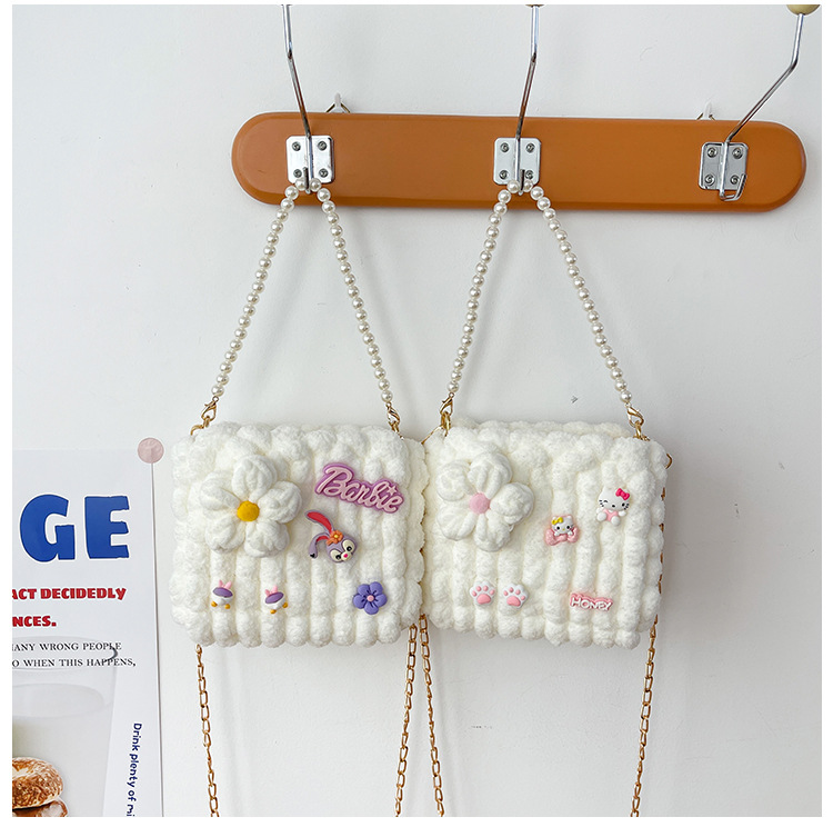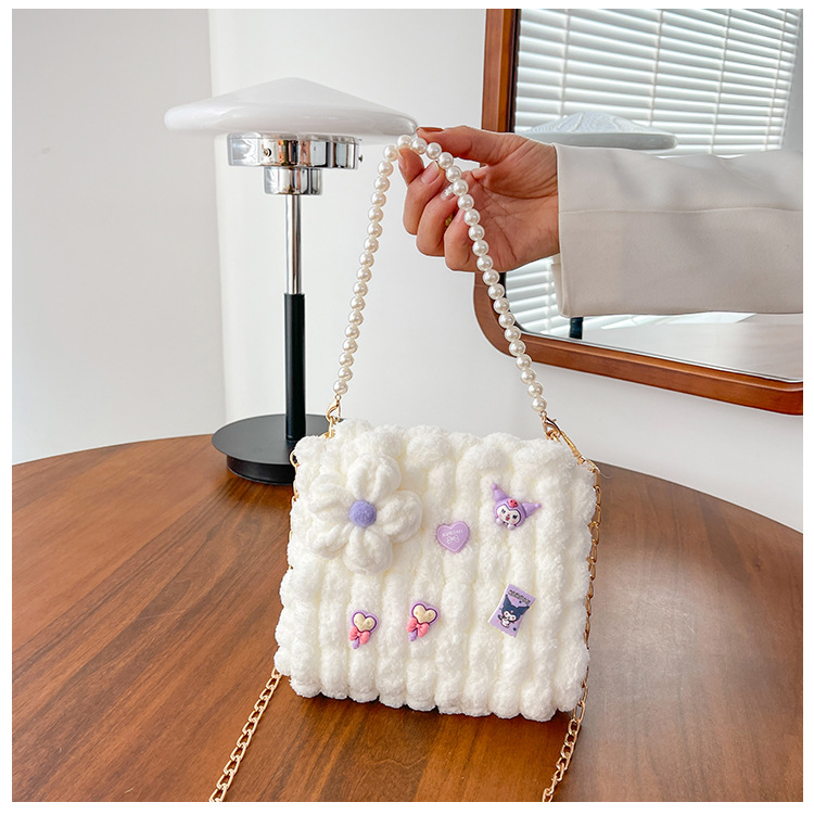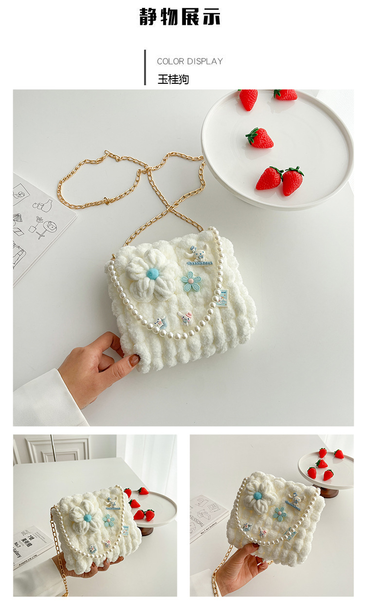 수제 짠 가방 DIY 소재 가방 수제 양모 완성 된 어린이 귀여운 크로스 바디 가방 여성 여자 친구 선물