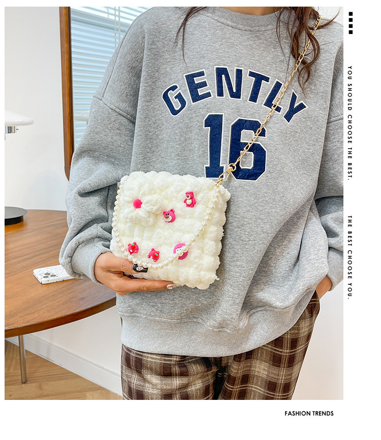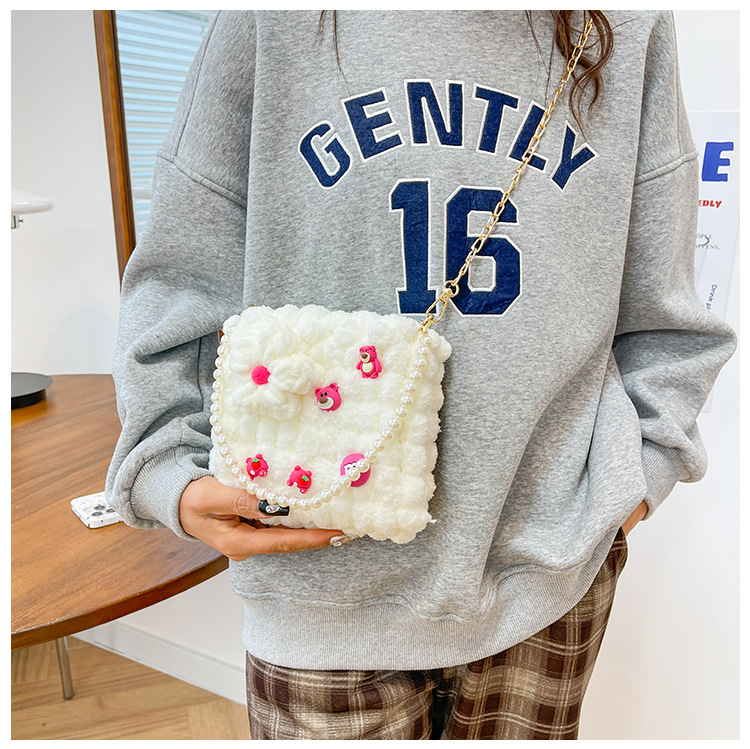 수제 짠 가방 DIY 소재 가방 수제 양모 완성 된 어린이 귀여운 크로스 바디 가방 여성 여자 친구 선물스토어 가기