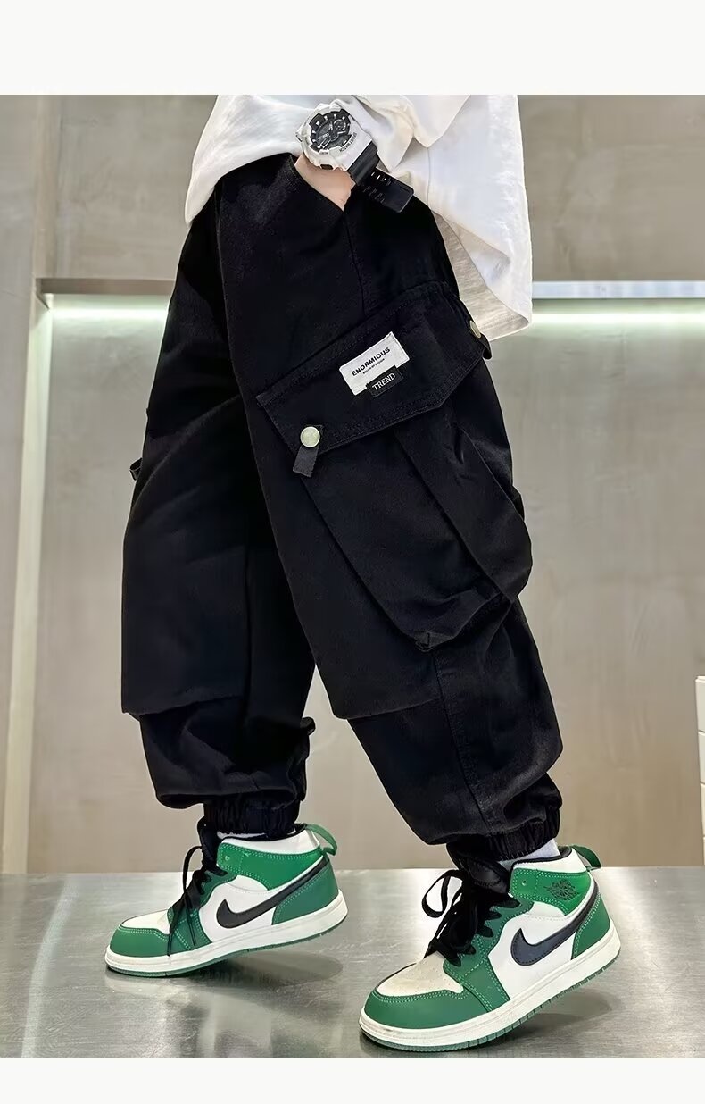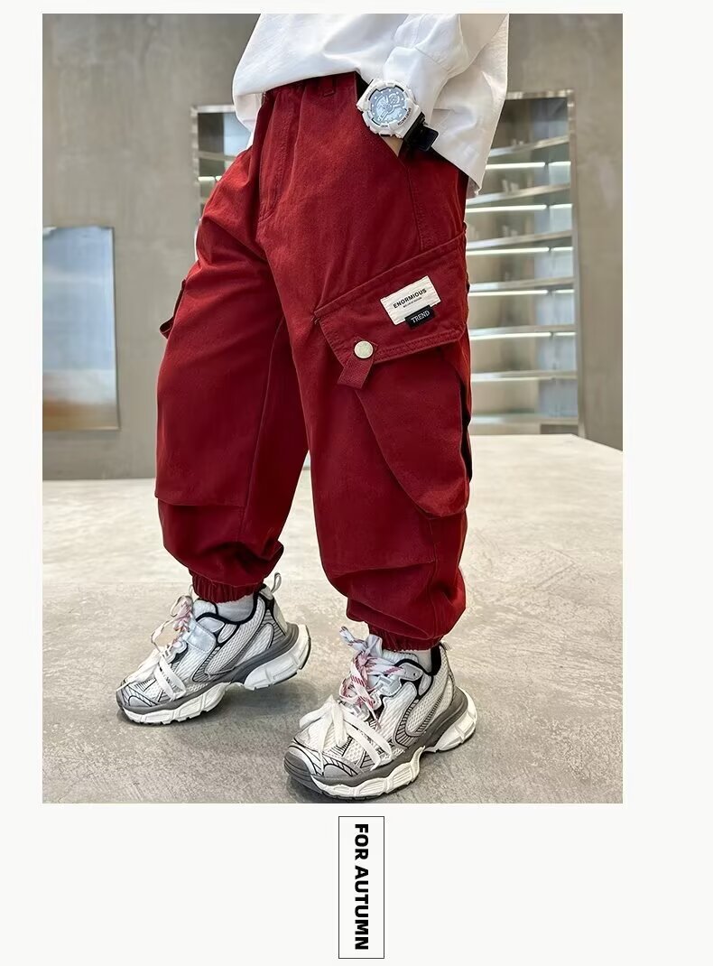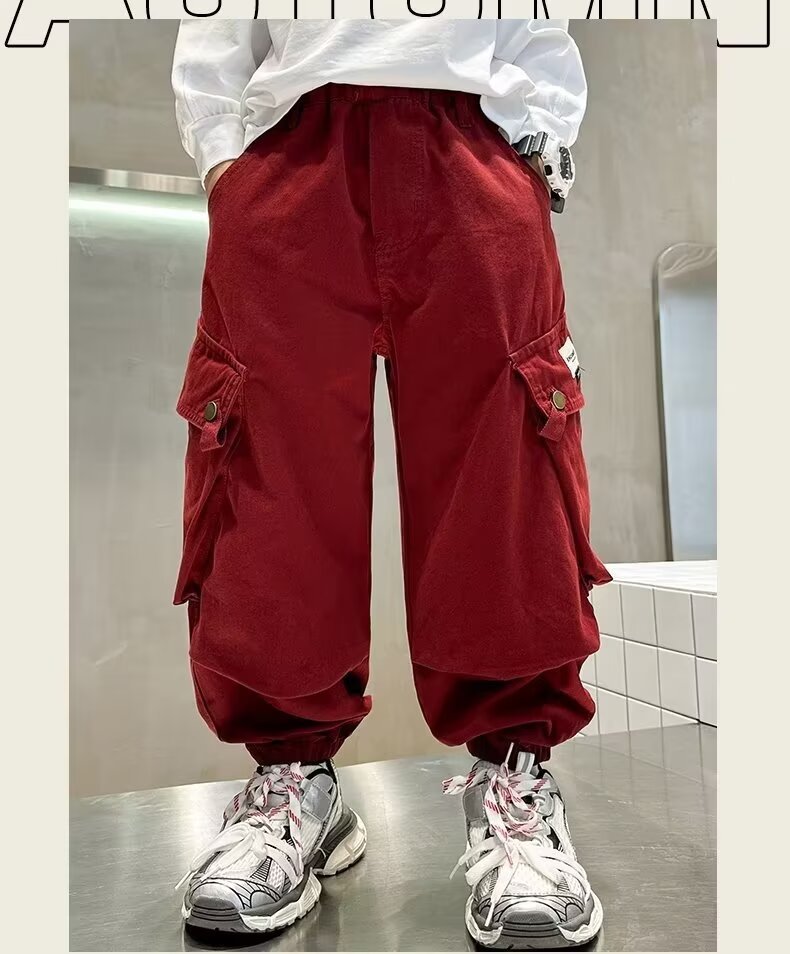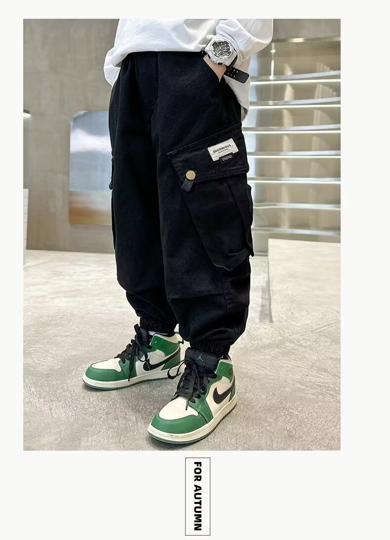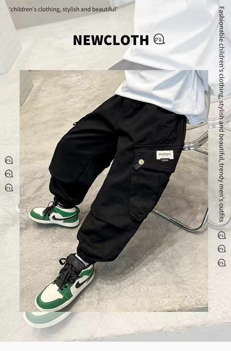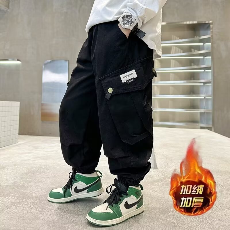 어린이 바지 소년 캐주얼 바지 가을 바지 2024 봄과 가을 새로운 기모 중대형 어린이 가을 코일 바지 트렌디