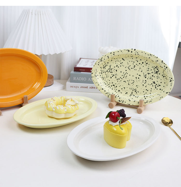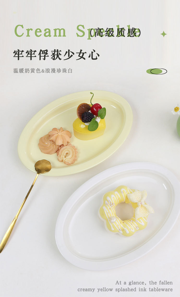 Ins 수출 한국 고가치 세라믹 디너 플레이트 도파민 니치 걸스 기숙사 홈 과일 플레이트 케이크 플레이트