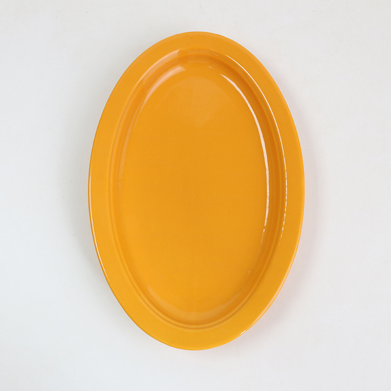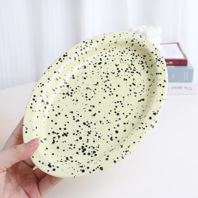 • 밝은 노란색과 검은색 스플래시 잉크 타원형 플레이트 - 9inch