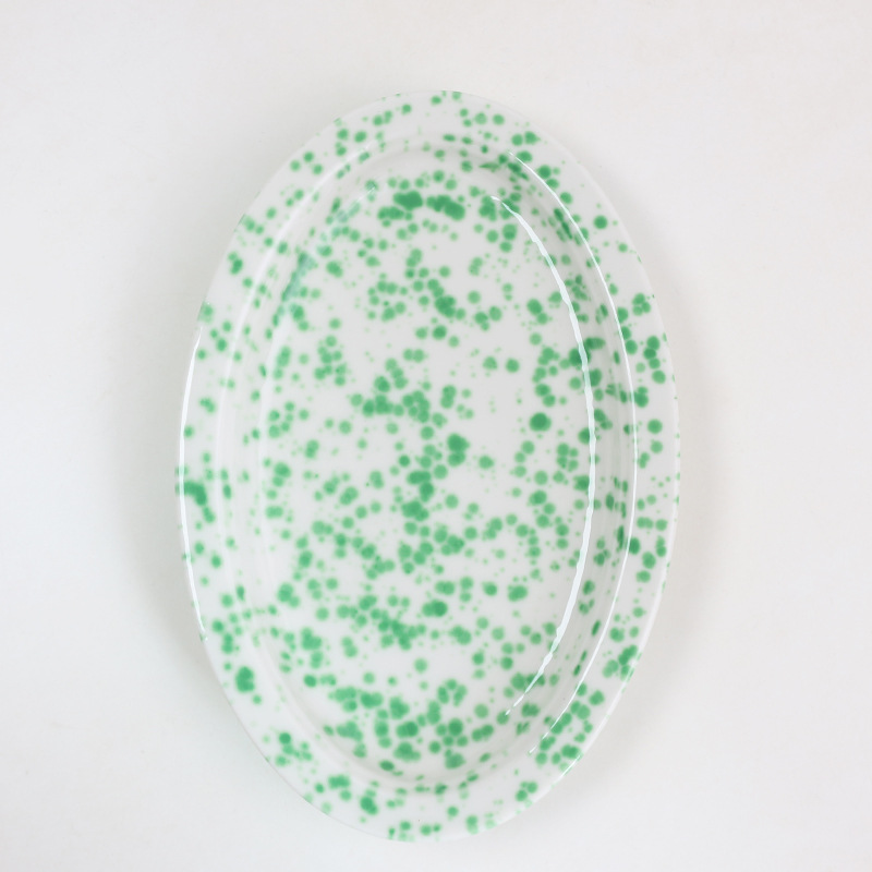 • 녹색 스플래시 잉크 타원형 플레이트 - 9inch