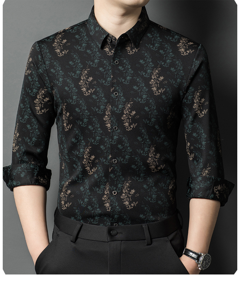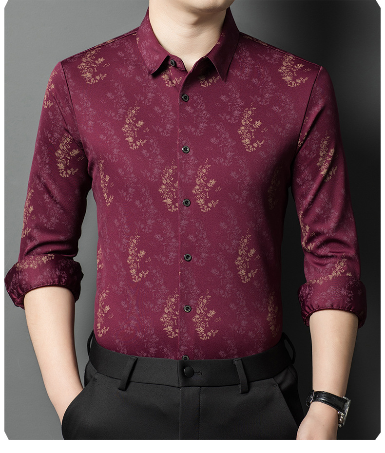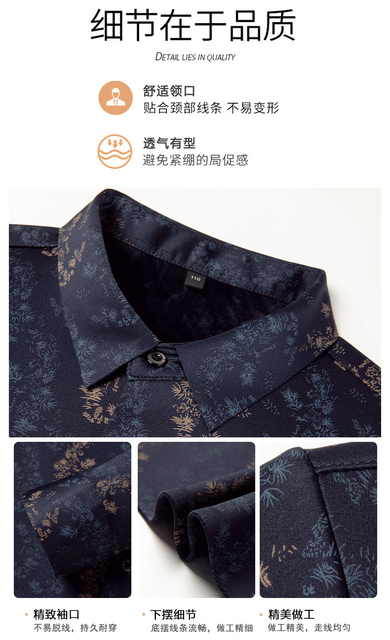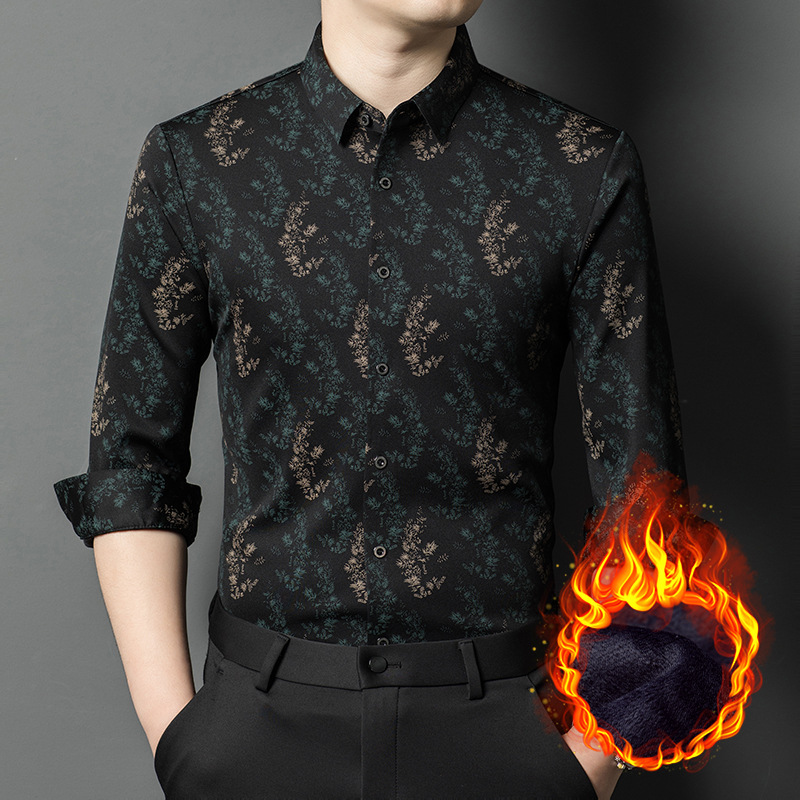 남성 하이 퀄리티 가을과 겨울 꽃 기모 두껍게 추적 된 긴팔 셔츠 젊고 중년의 비즈니스 캐주얼 우아한 셔츠