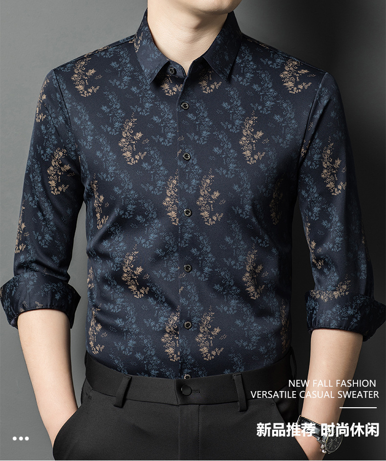 남성 하이 퀄리티 가을과 겨울 꽃 기모 두껍게 추적 된 긴팔 셔츠 젊고 중년의 비즈니스 캐주얼 우아한 셔츠스토어 가기