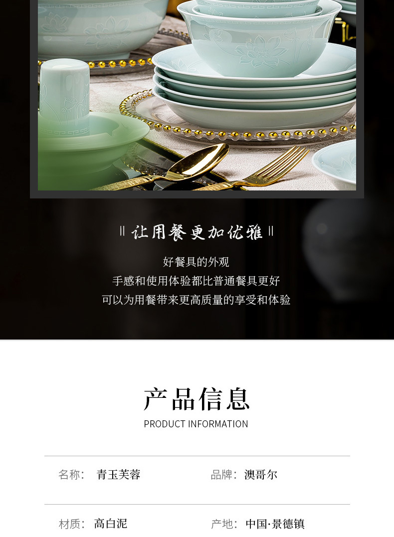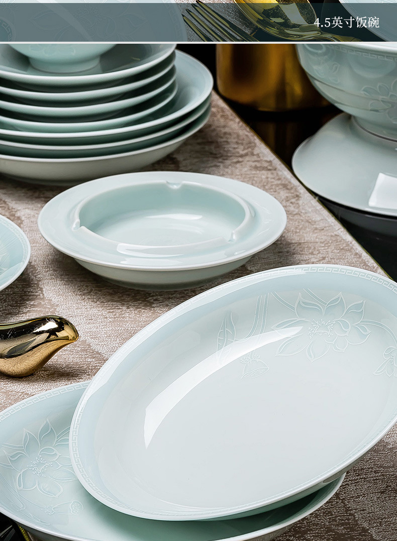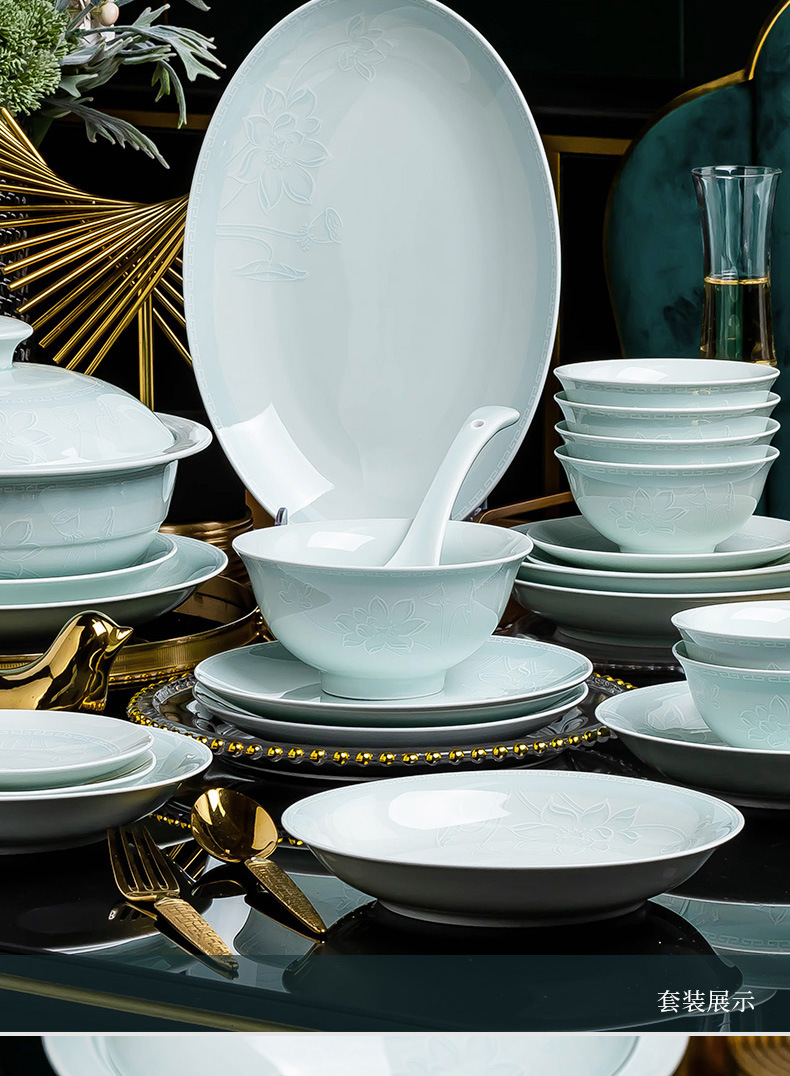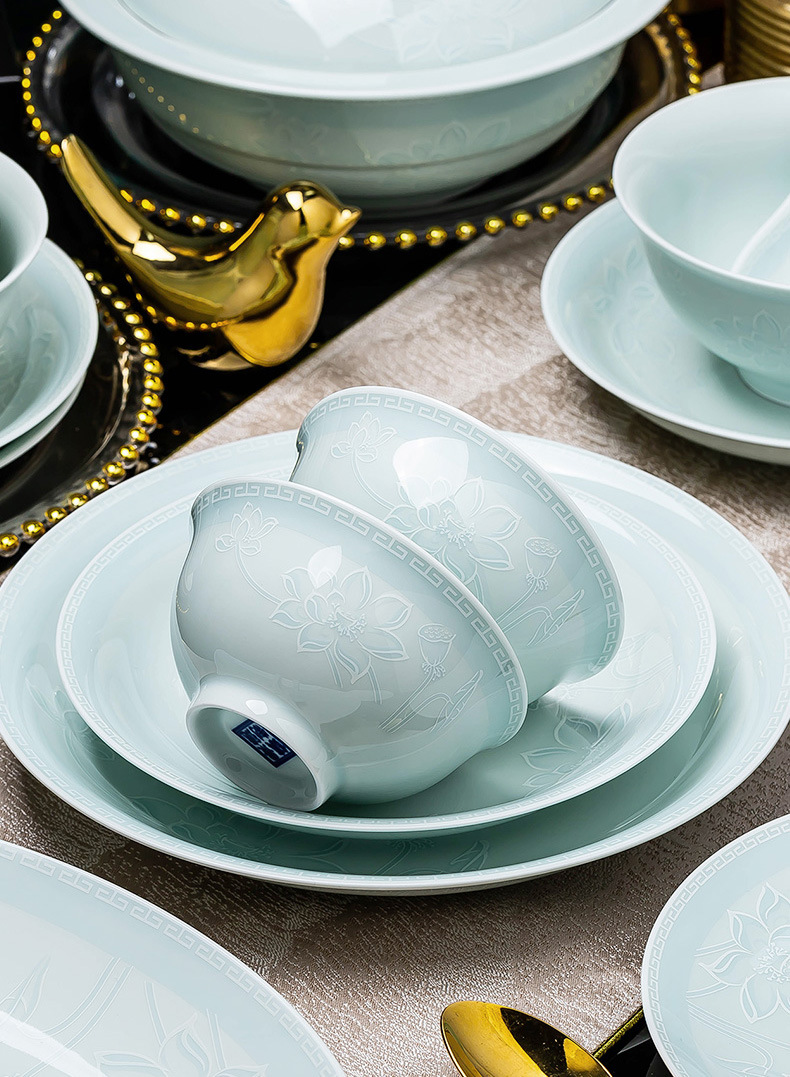 Underglaze 컬러 고온 화이트 도자기 녹색 유약 그릇 플레이트 가정용 Jingdezhen 세라믹 단일 식사 그릇 하이 엔드 식기