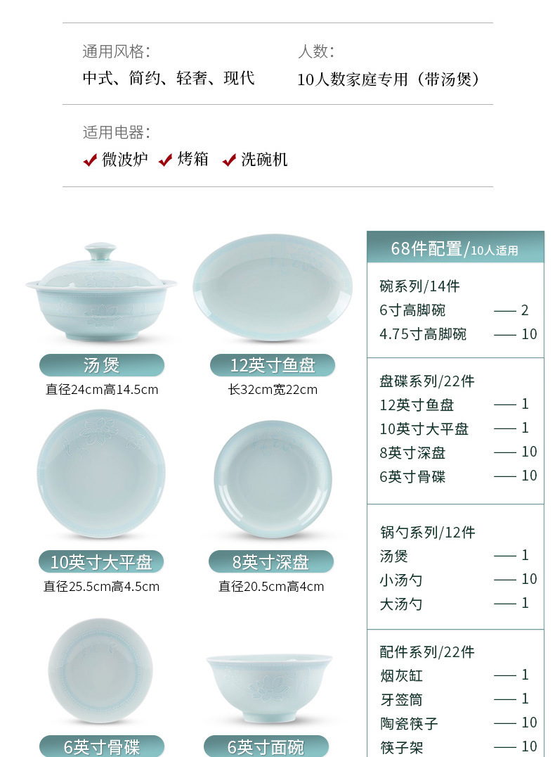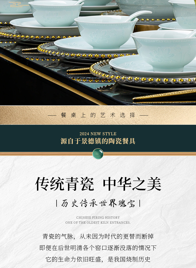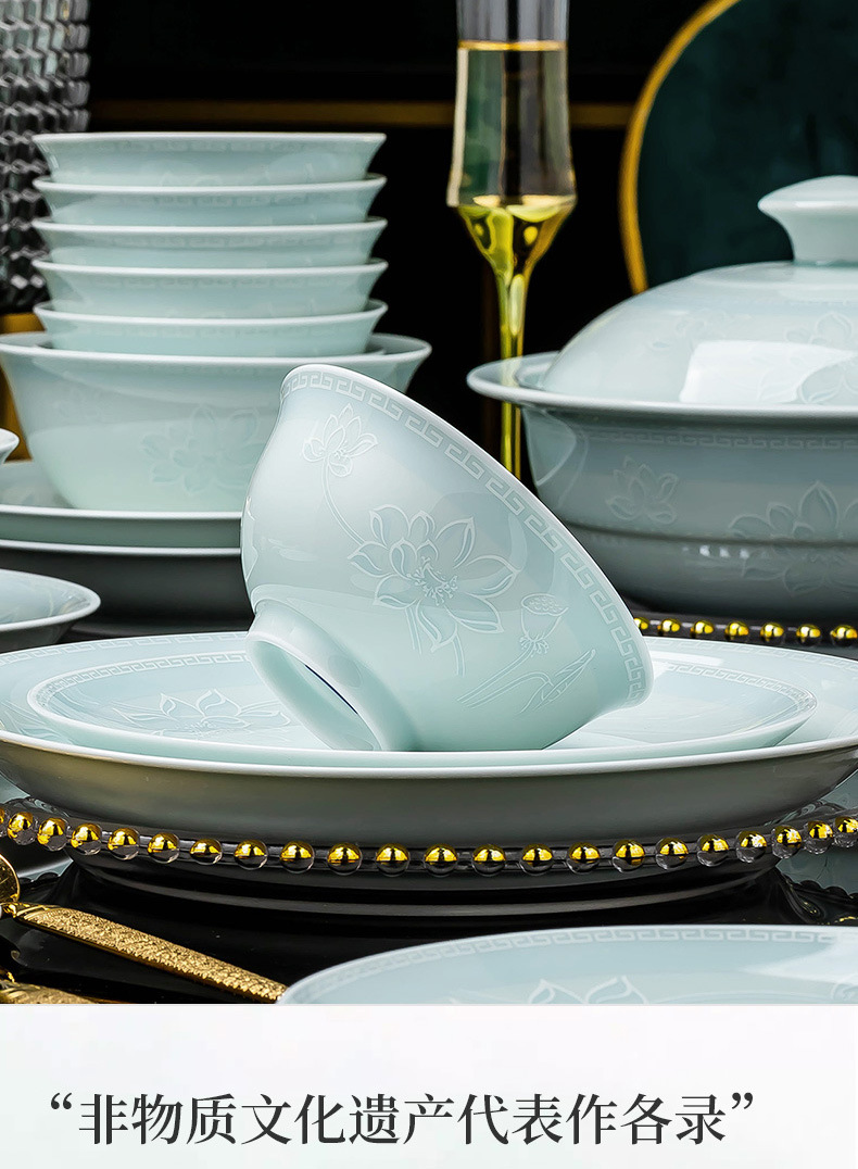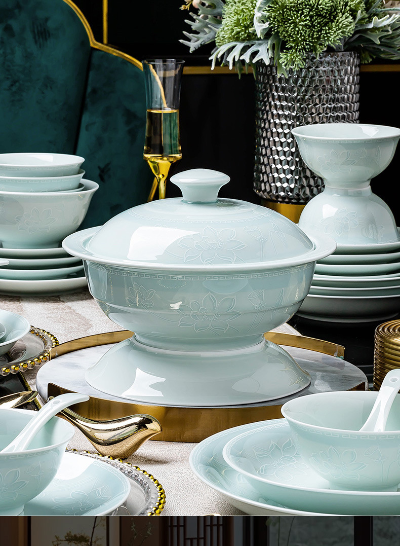 Underglaze 컬러 고온 화이트 도자기 녹색 유약 그릇 플레이트 가정용 Jingdezhen 세라믹 단일 식사 그릇 하이 엔드 식기
