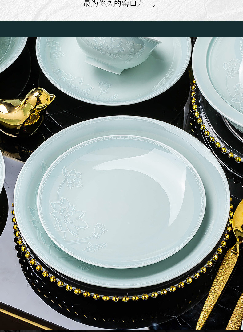 Underglaze 컬러 고온 화이트 도자기 녹색 유약 그릇 플레이트 가정용 Jingdezhen 세라믹 단일 식사 그릇 하이 엔드 식기스토어 가기