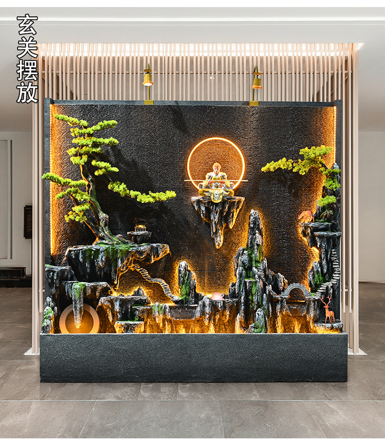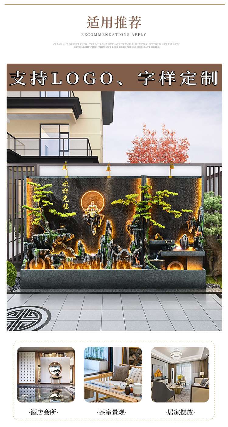 물 커튼 벽 흐르는 물 스크린 사무실 파티션 장식 실내 및 실외 안뜰 바위 물고기 연못 분수 풍경 장식품스토어 가기