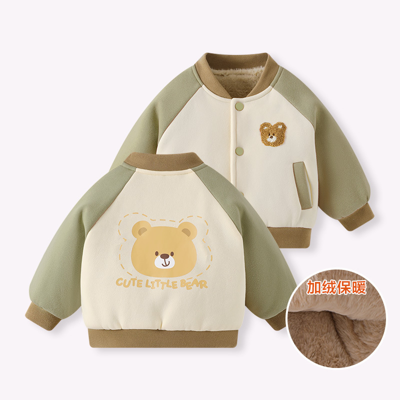 새로운 아기 옷 캐주얼 어린이 야구 세트 소년의 기모 따뜻한 재킷 가을과 겨울 소녀 아기 탑스토어 가기