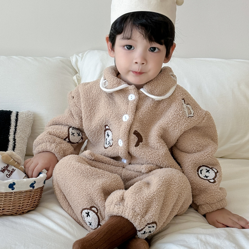 가을과 겨울 어린이 잠옷 기모 두꺼운 따뜻한 아기 플란넬 홈 옷 부드러운 구름 벨벳 소년 소녀스토어 가기