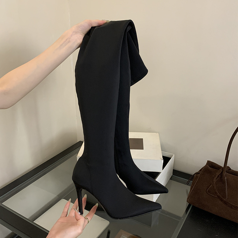 유럽과 미국의 무릎 위 부츠 여성의 가을과 겨울 2023 새로운 뾰족한 하이힐 신발 스트레치 얇은 부츠스토어 가기