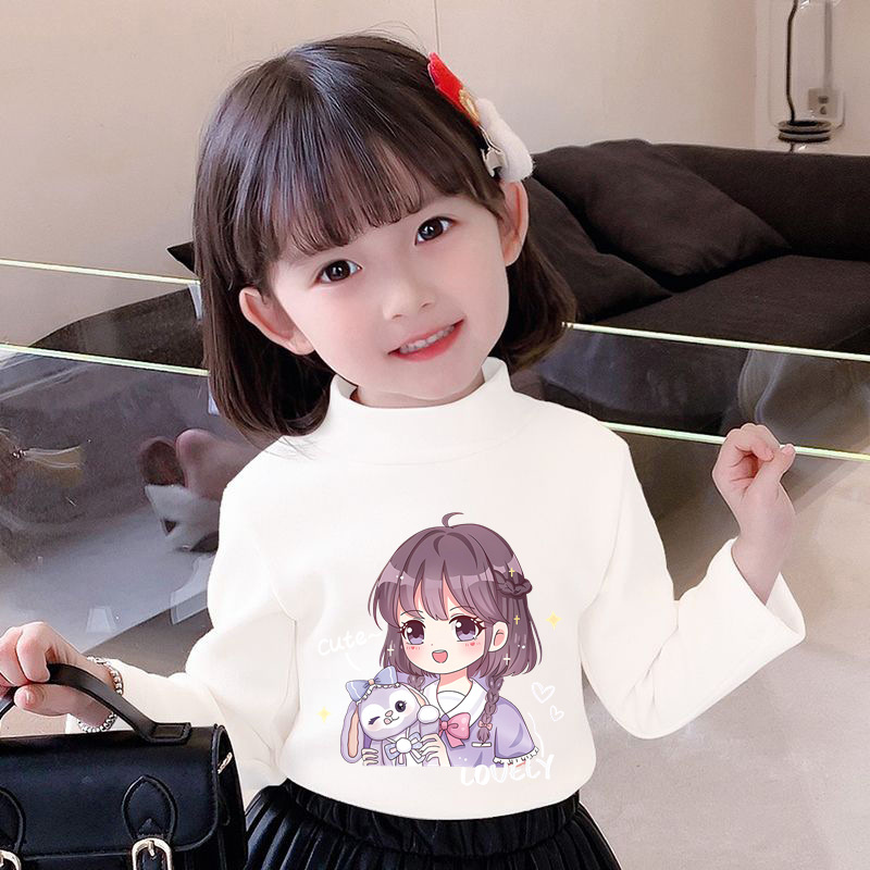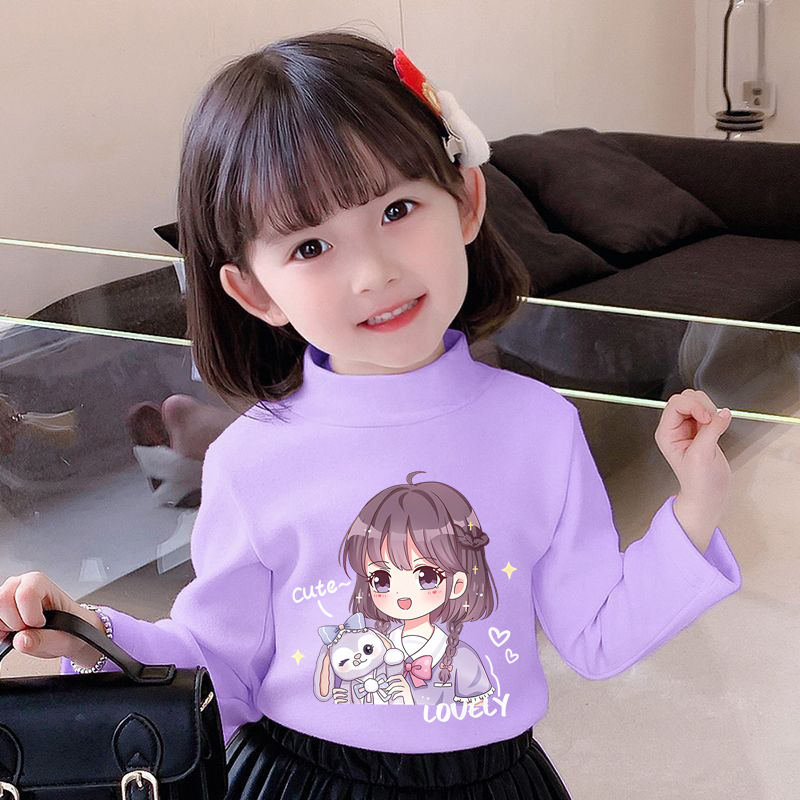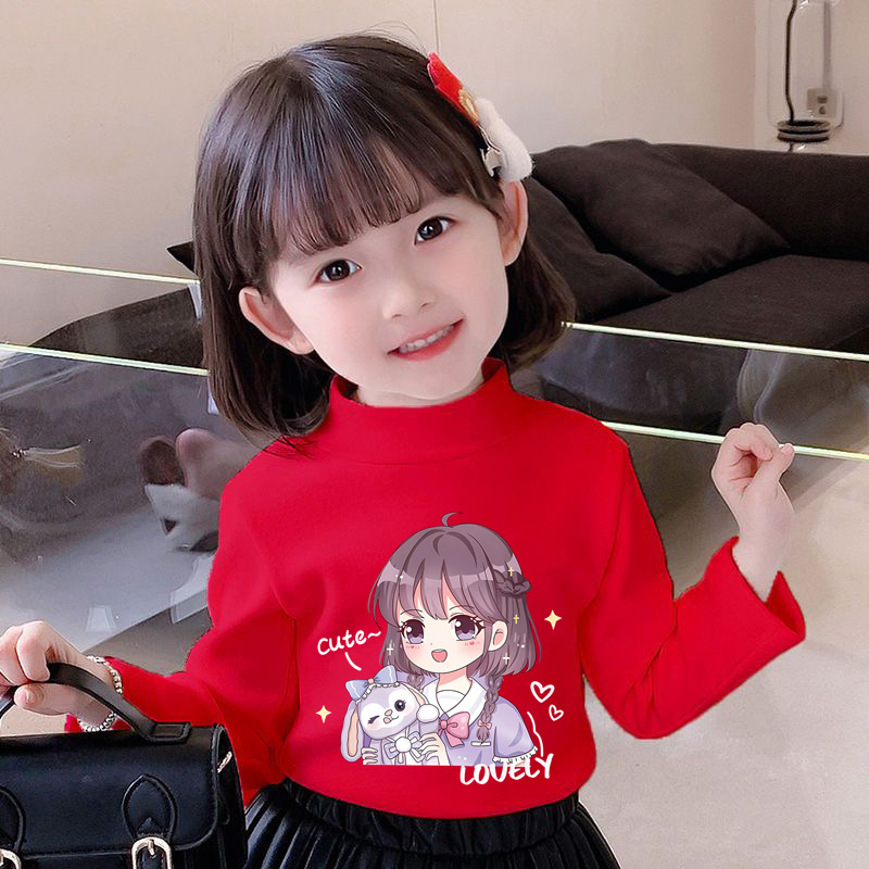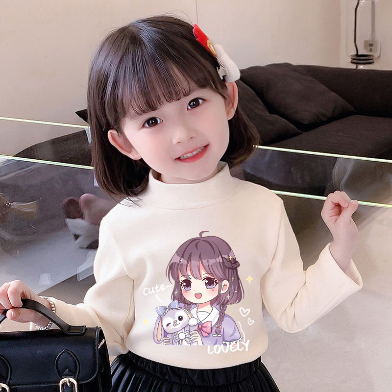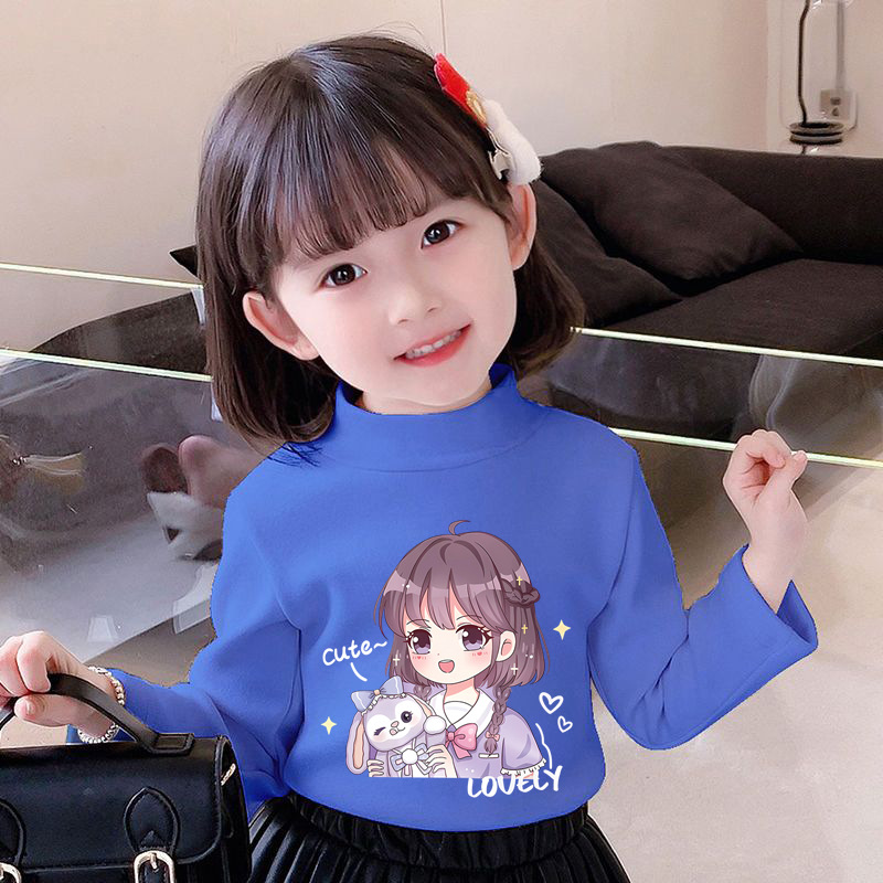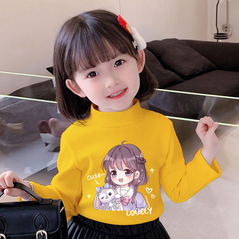 Y2373 # 가을 여자 레저 만화 재킷 드 벨벳 티셔츠 어린이 조커 레저 웨스턴 스타일 긴 소매 T