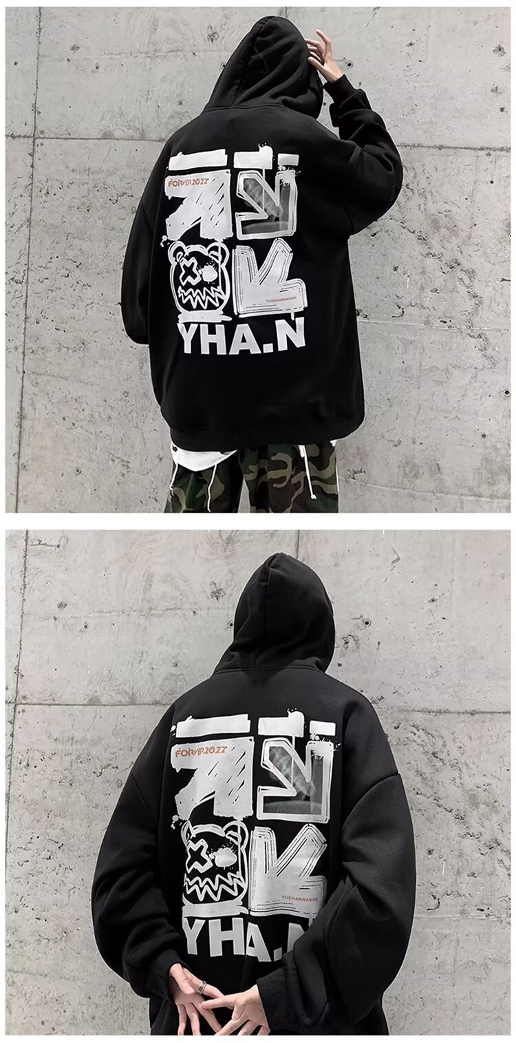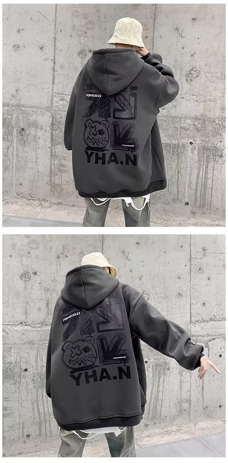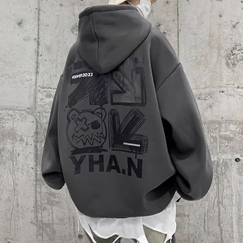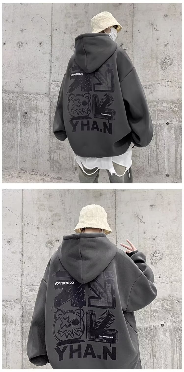 남자 후드 봄과 가을 운동복 남자 홍콩 스타일 느슨한 유행 브랜드 편지 인쇄 모든 경기 재킷 2024 새로운 남성 의류