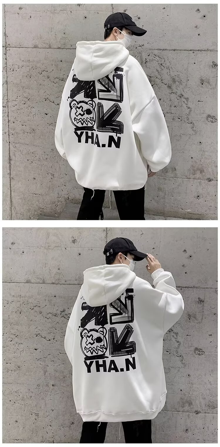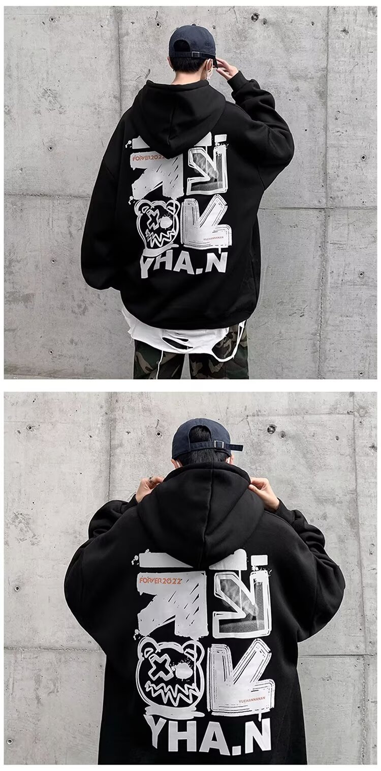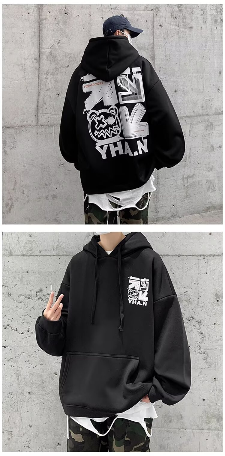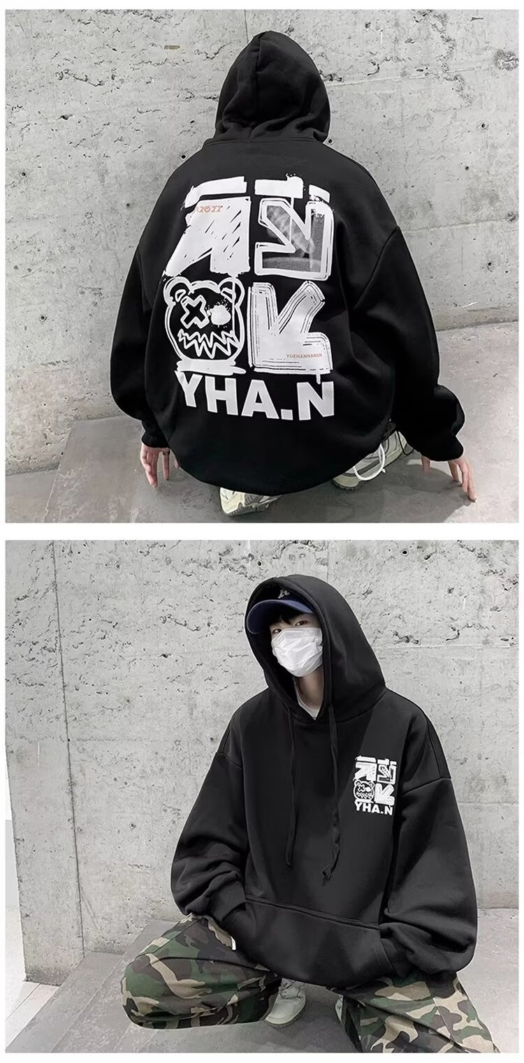 남자 후드 봄과 가을 운동복 남자 홍콩 스타일 느슨한 유행 브랜드 편지 인쇄 모든 경기 재킷 2024 새로운 남성 의류