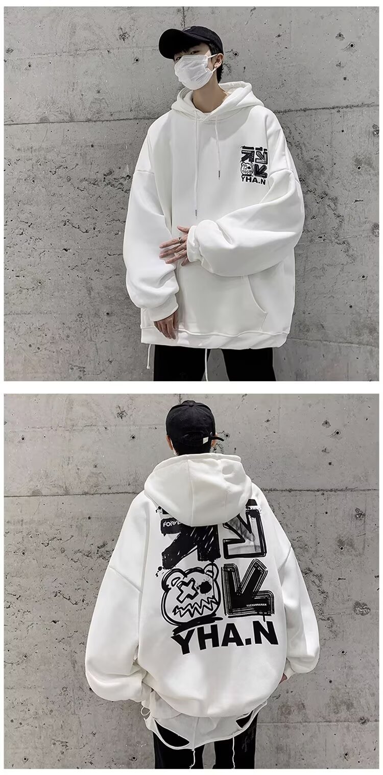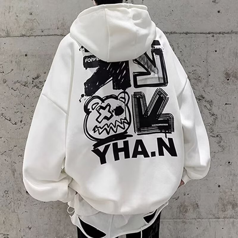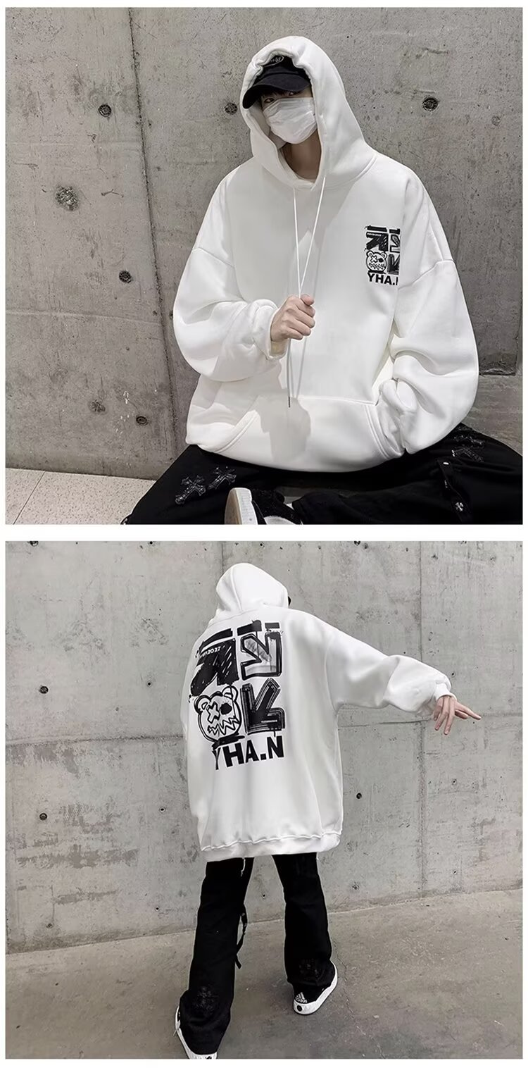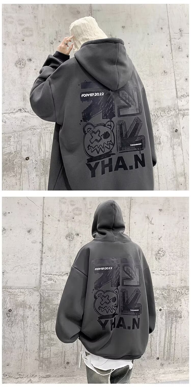 남자 후드 봄과 가을 운동복 남자 홍콩 스타일 느슨한 유행 브랜드 편지 인쇄 모든 경기 재킷 2024 새로운 남성 의류