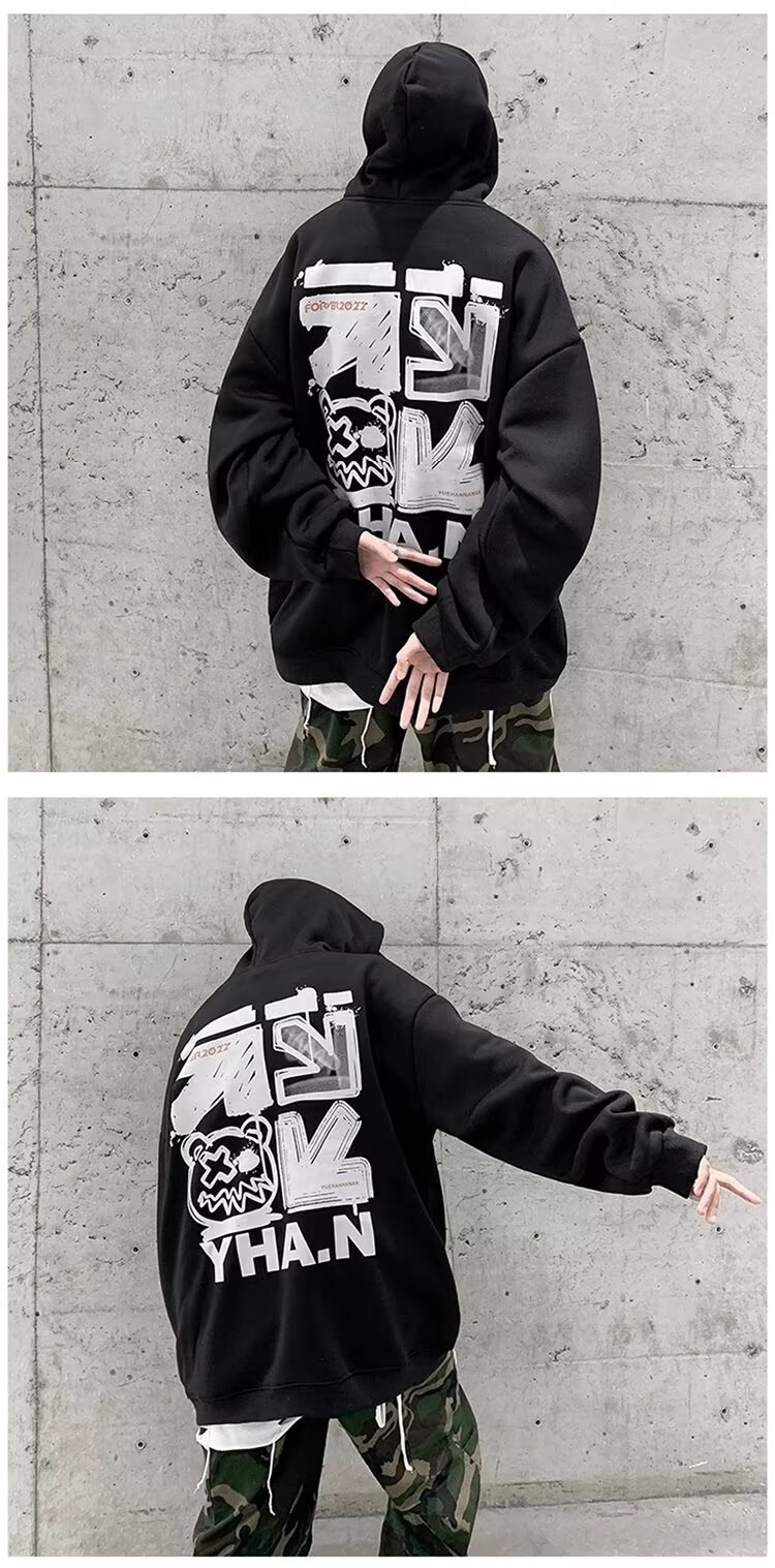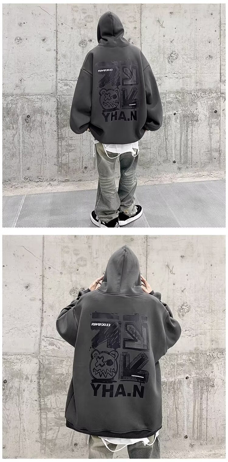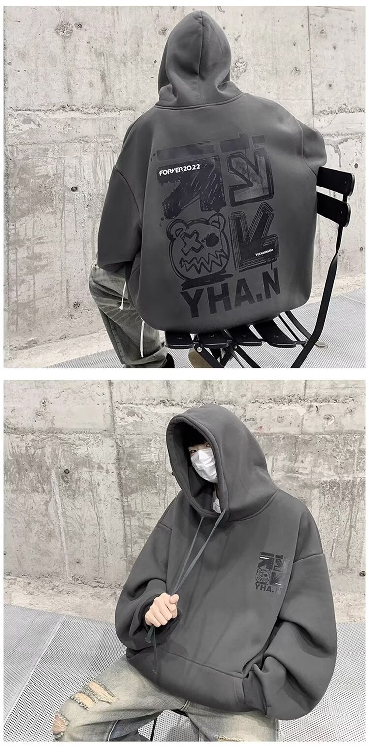 남자 후드 봄과 가을 운동복 남자 홍콩 스타일 느슨한 유행 브랜드 편지 인쇄 모든 경기 재킷 2024 새로운 남성 의류스토어 가기