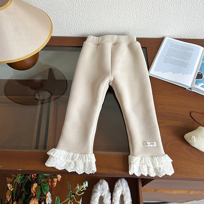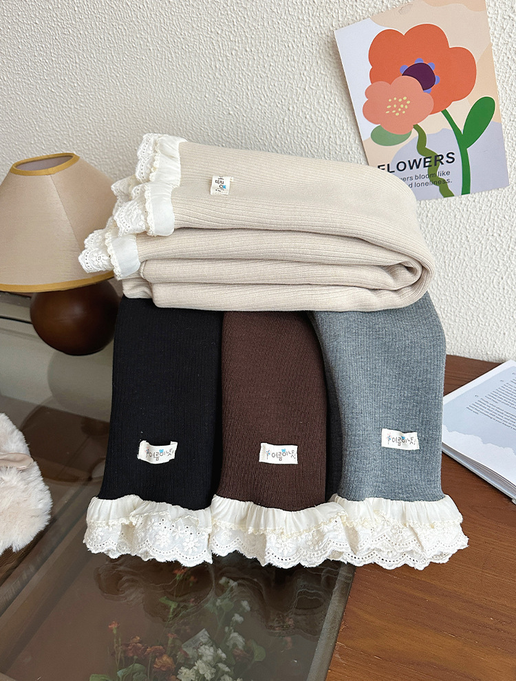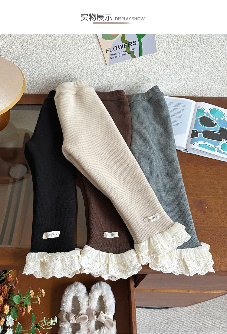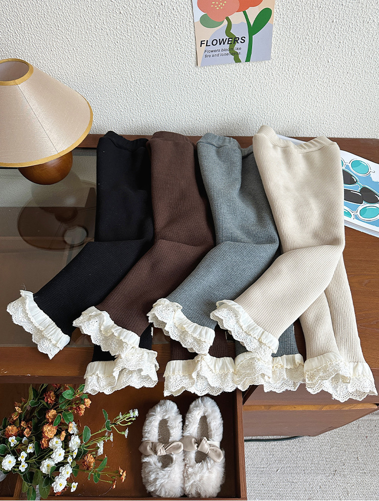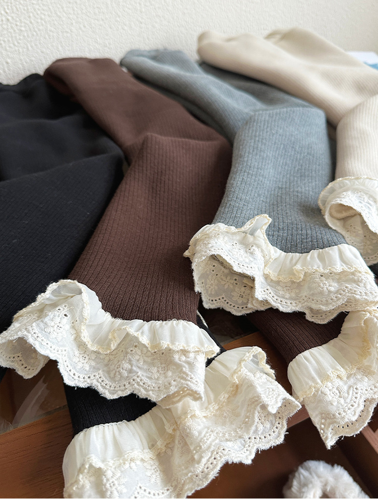 한국 겨울 원피스 벨벳 소녀 패딩 바지 24 새로운 스타일 올 매치 단색 레이스 레깅스