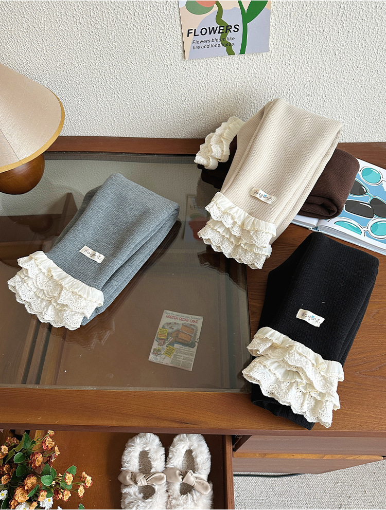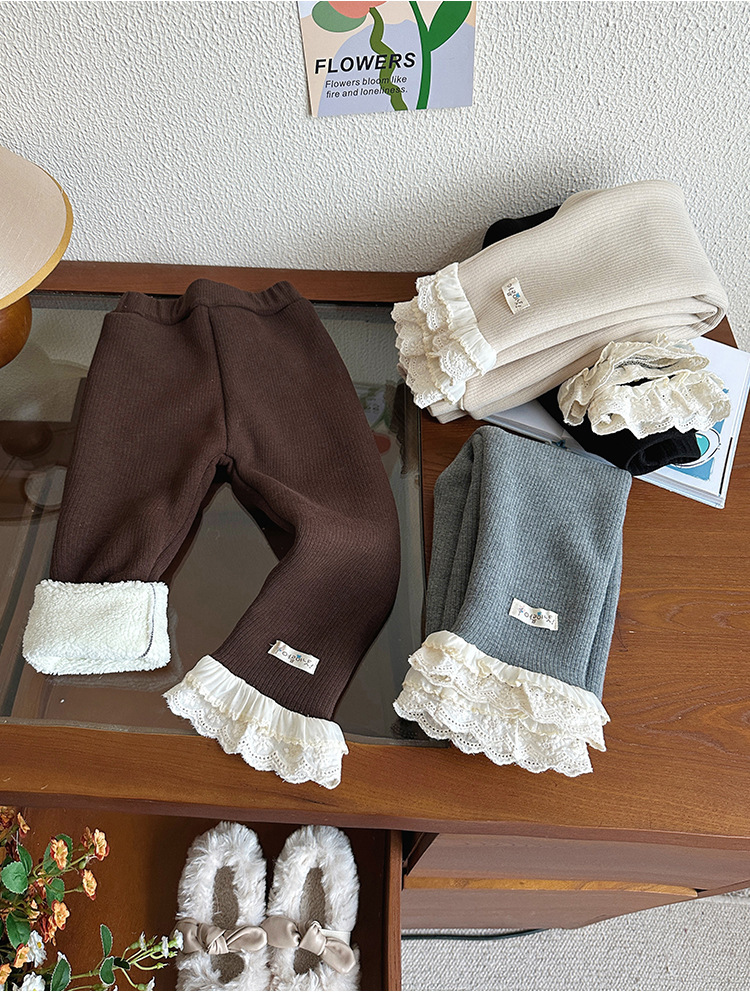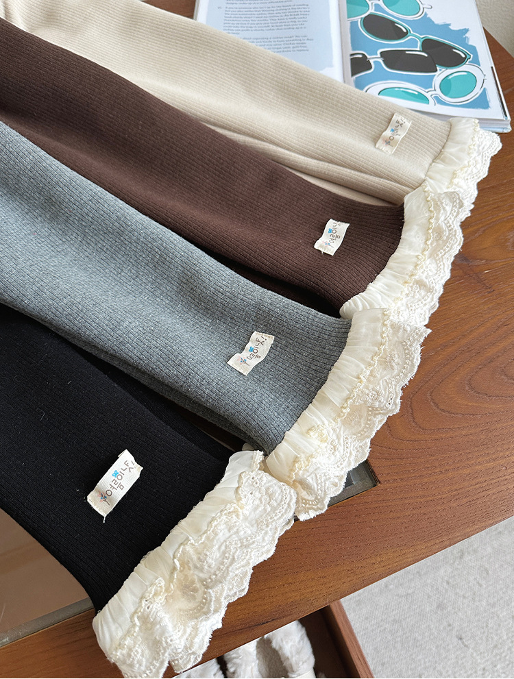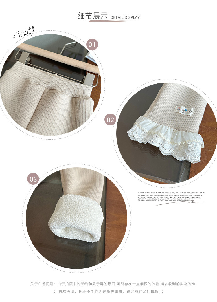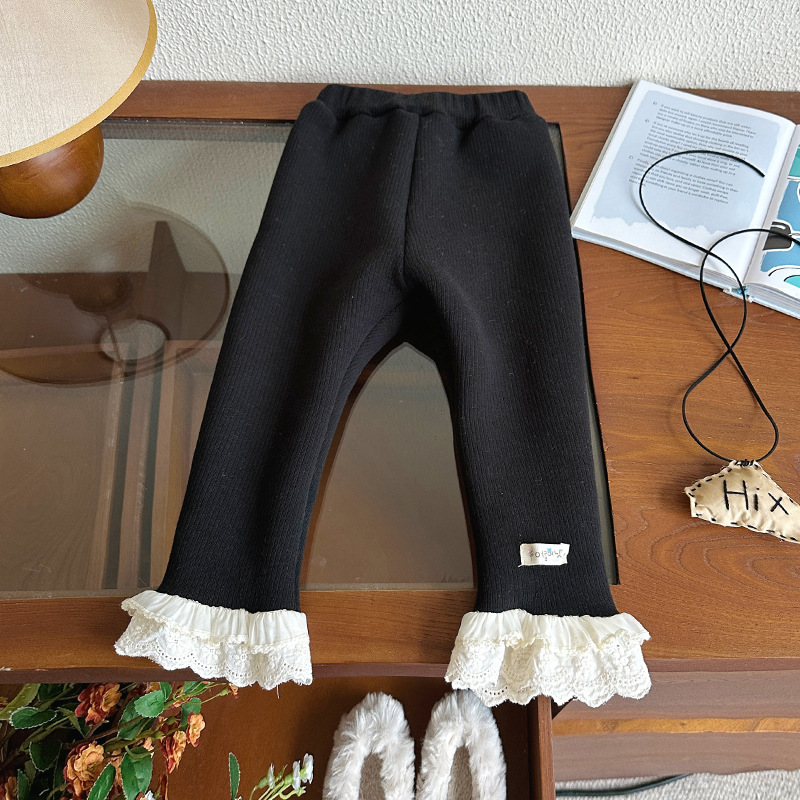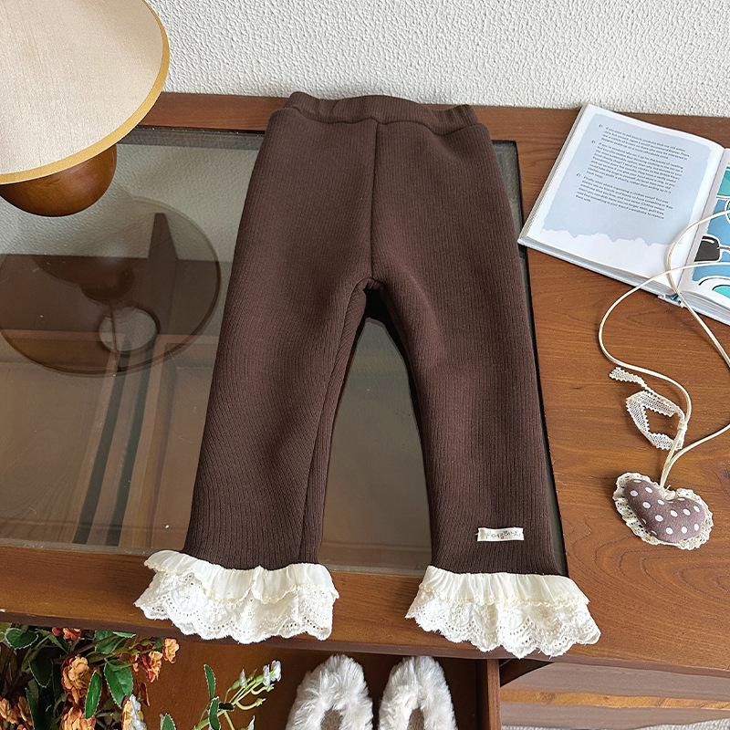 한국 겨울 원피스 벨벳 소녀 패딩 바지 24 새로운 스타일 올 매치 단색 레이스 레깅스
