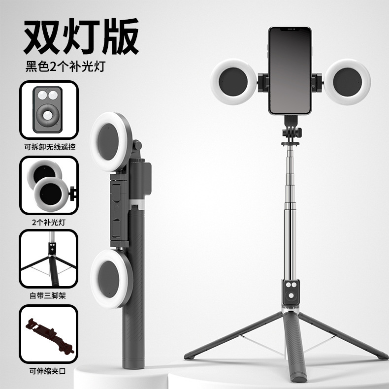 BT12 블루투스 셀프 타이머 동요 톤 원격 컨트롤러 통합 조명 충전 휴대 전화 라이브 스탠드 1.7 m 삼각대
