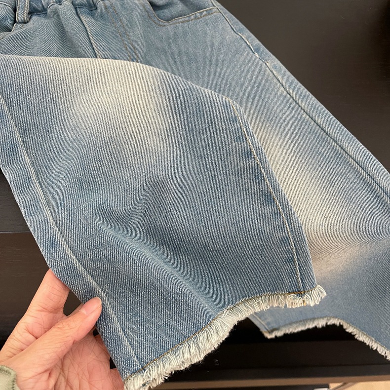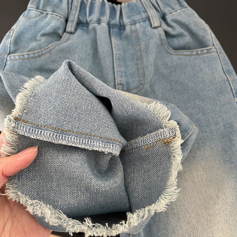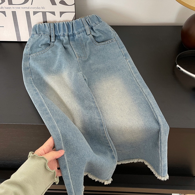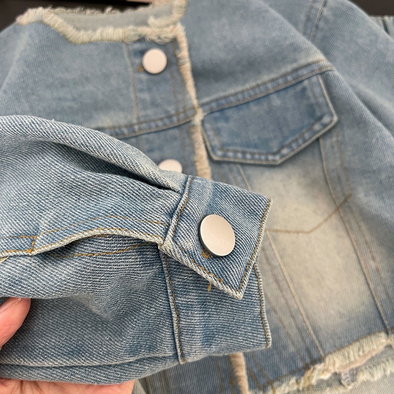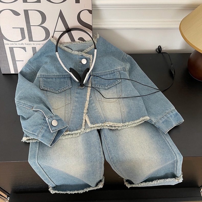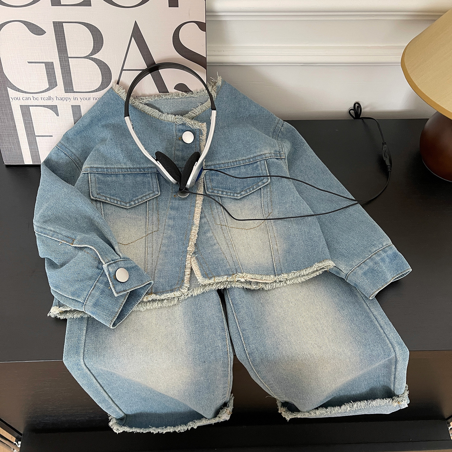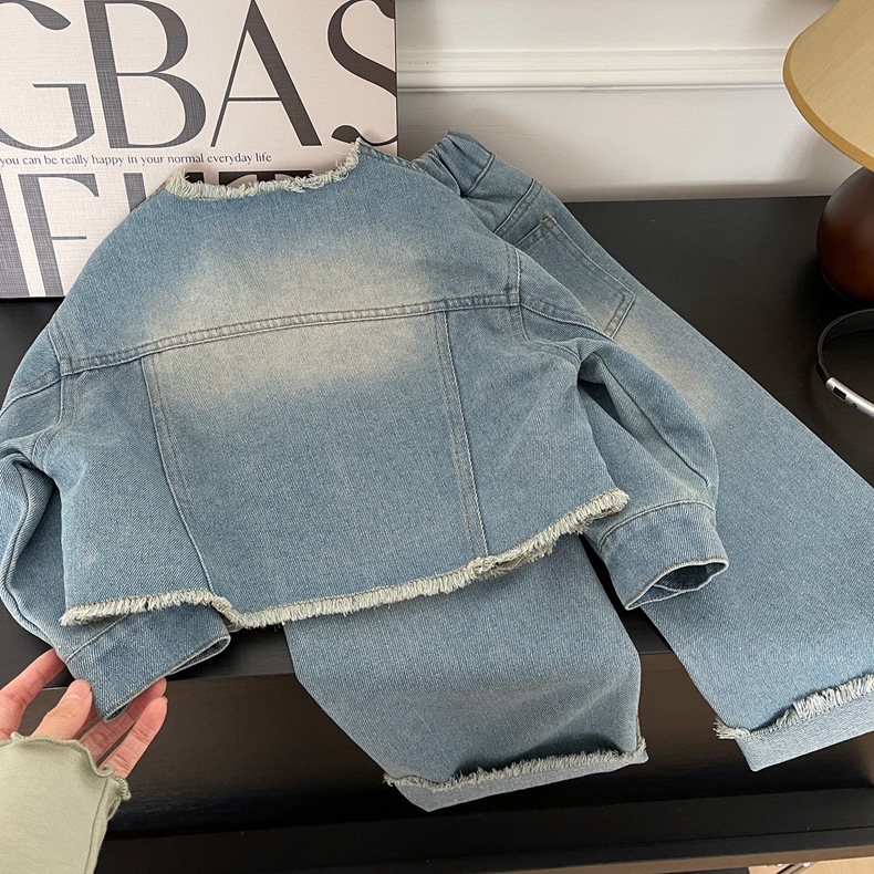 여자 세련된 봄 데님 세트 2024 새로운 어린 소녀 한국 캐주얼 투피스 세트 아기 소녀 데님 트렌디스토어 가기
