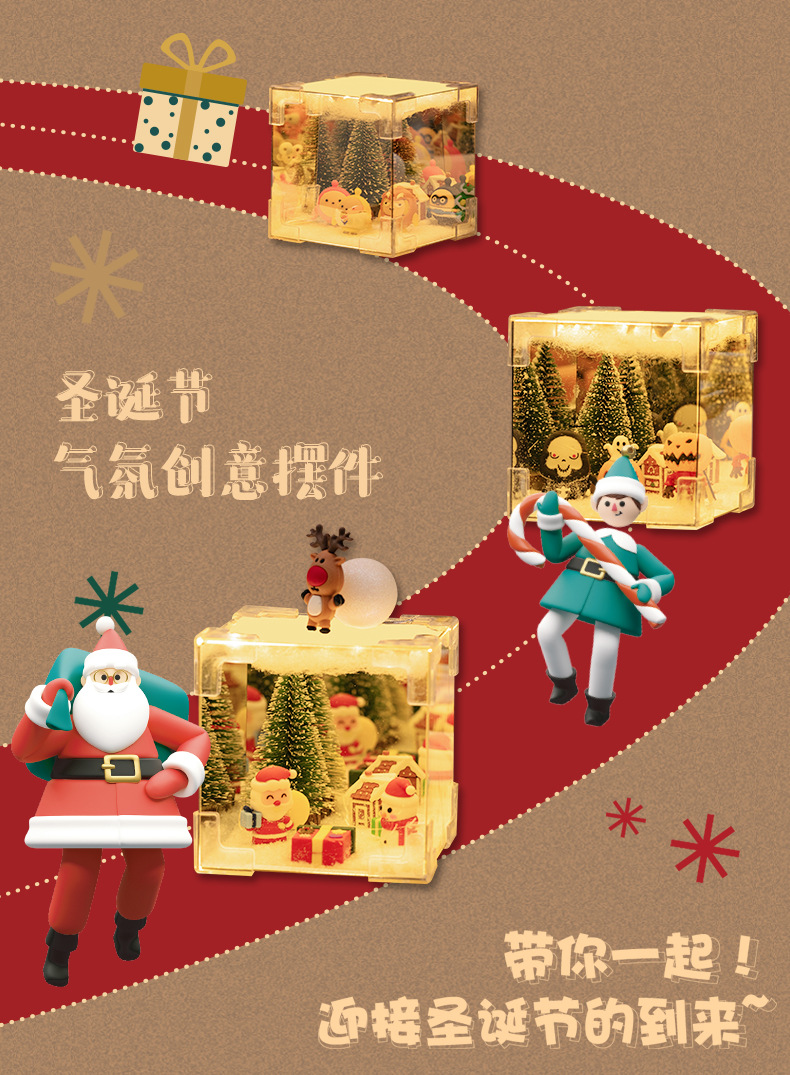 • 크리스마스 루빅스 큐브 야간 조명 - 무작위 장식품 - 재료 패키지