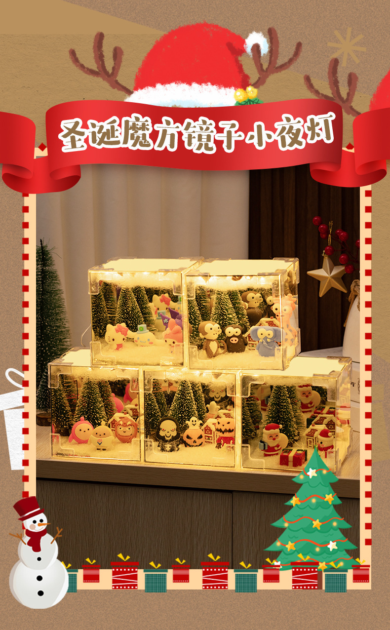 크리스마스 매직 나이트 라이트 DIY 루빅스 큐브 나이트 라이트 만화 동물 파티 크리스마스 루빅스 큐브 미러 나이트 라이트스토어 가기