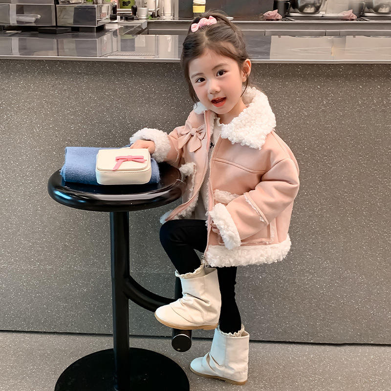 소녀의 코트 가을과 겨울 2024 새로운 서양식 아기 소녀의 겨울 가을 재킷 어린이 모피 코트스토어 가기