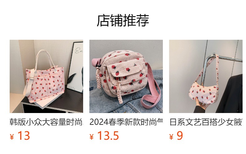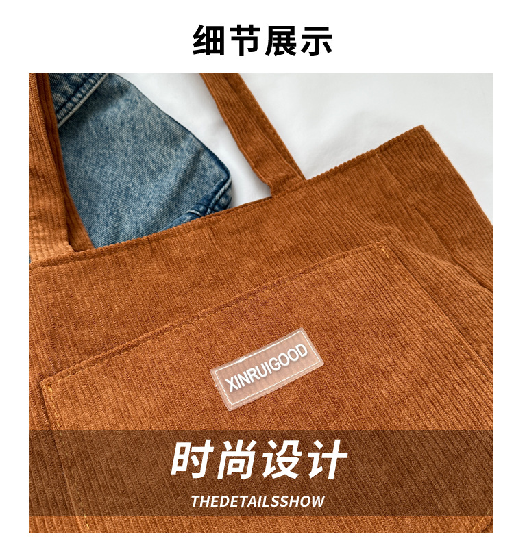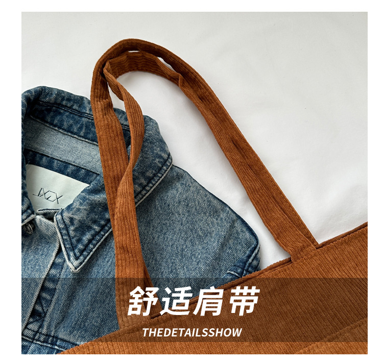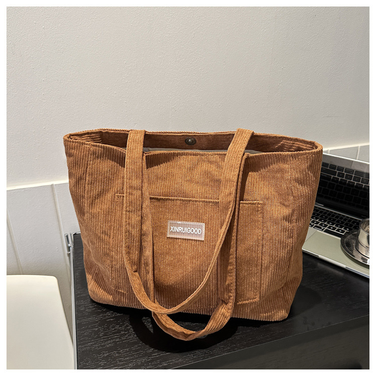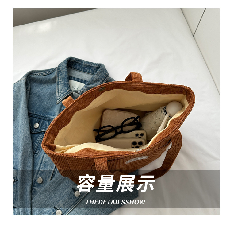 대용량 토트 백 여성의 2024 새로운 패션 코듀로이 숄더 백 인 모리 언더암 가방 핸드백스토어 가기