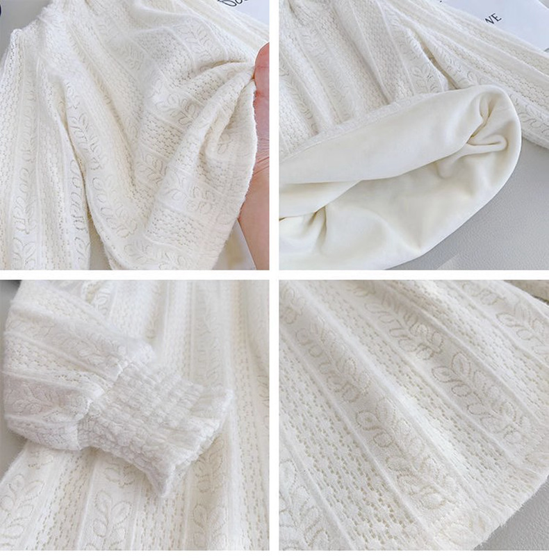 한국 스타일 패션 2025 겨울 여아용 플리스 안감 이너웨어 여아용 반하이넥 티셔츠 세련된 레이스 두꺼운 상의스토어 가기