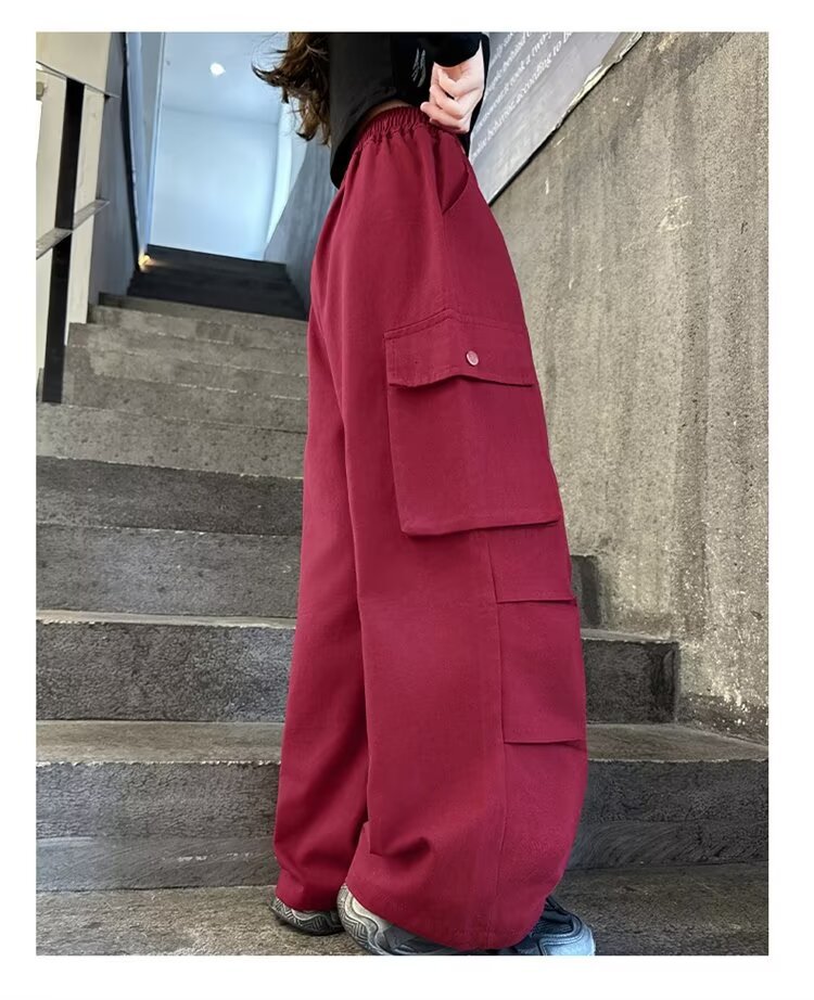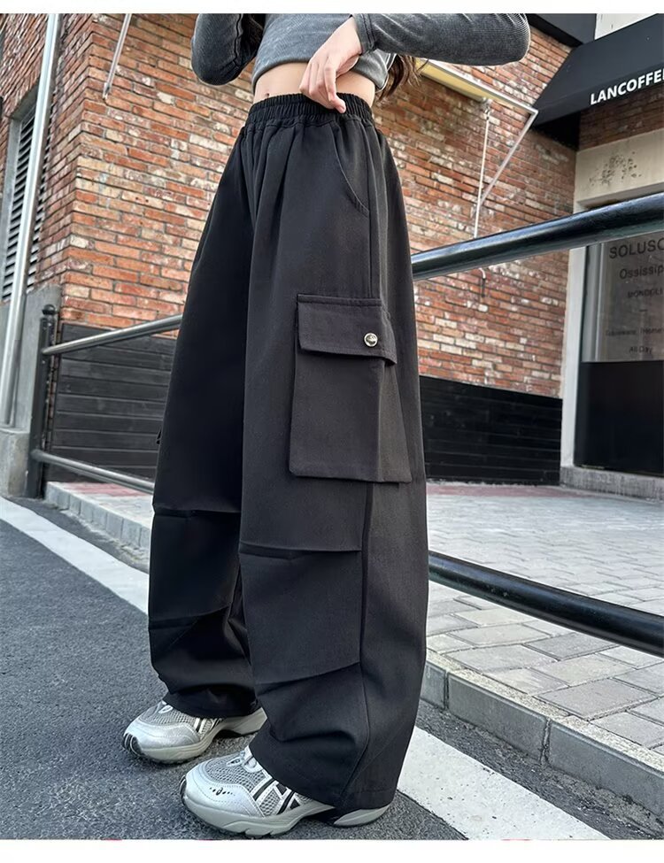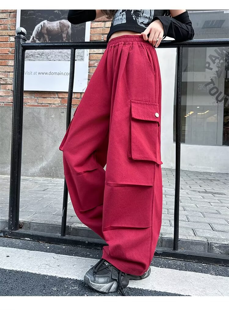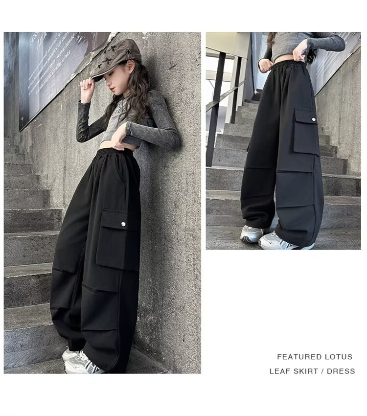 소녀 바지 봄과 가을 2024 새로운 스타일 중대형 어린이 가을 어린이 작업복 캐주얼 와이드 다리 바지 느슨한 힙합 바지