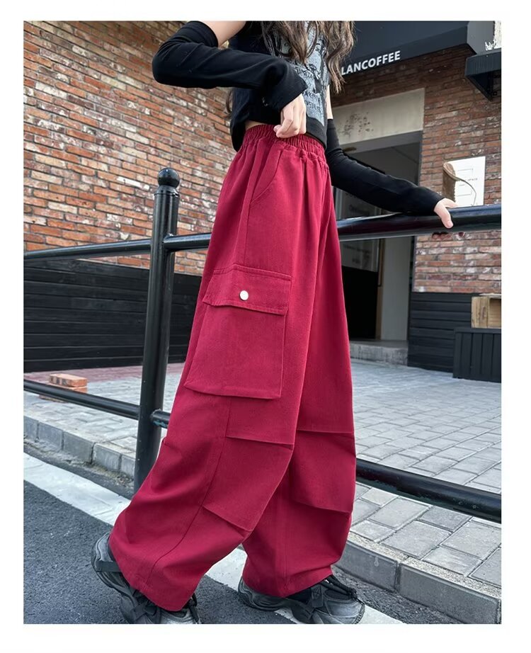 여아 바지 봄 가을 2025 신상 중대형 아동 가을 어린이 작업복 캐주얼 와이드 팬츠 루즈핏 스트릿 댄스 롱 팬츠