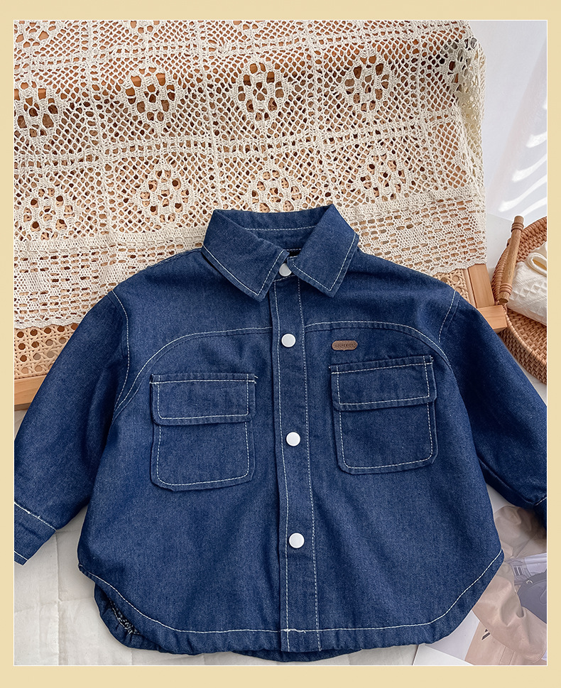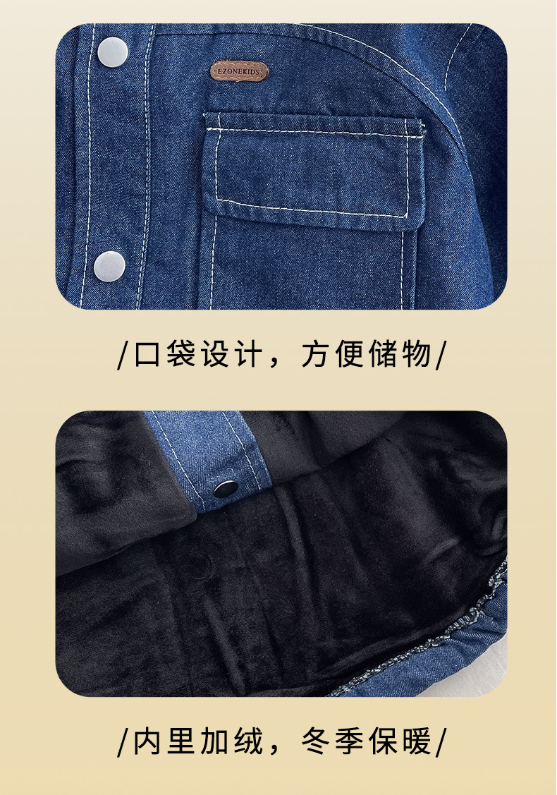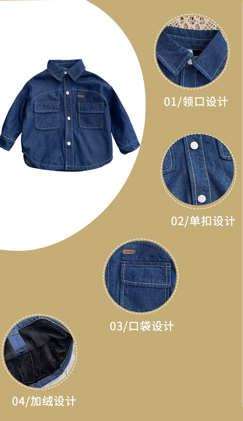 아동복 남아 한국 스타일 겨울 데님 플리스 재킷 2025 신상품 중소 아동 가을 겨울 아동용 박시티셔츠 트렌디스토어 가기