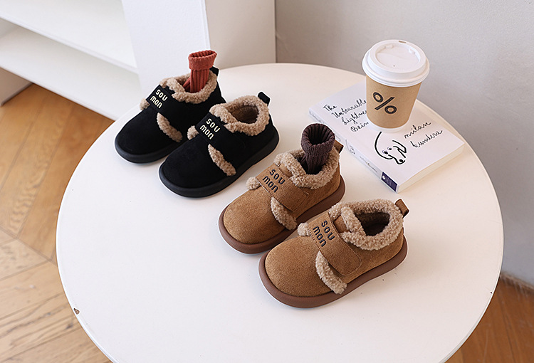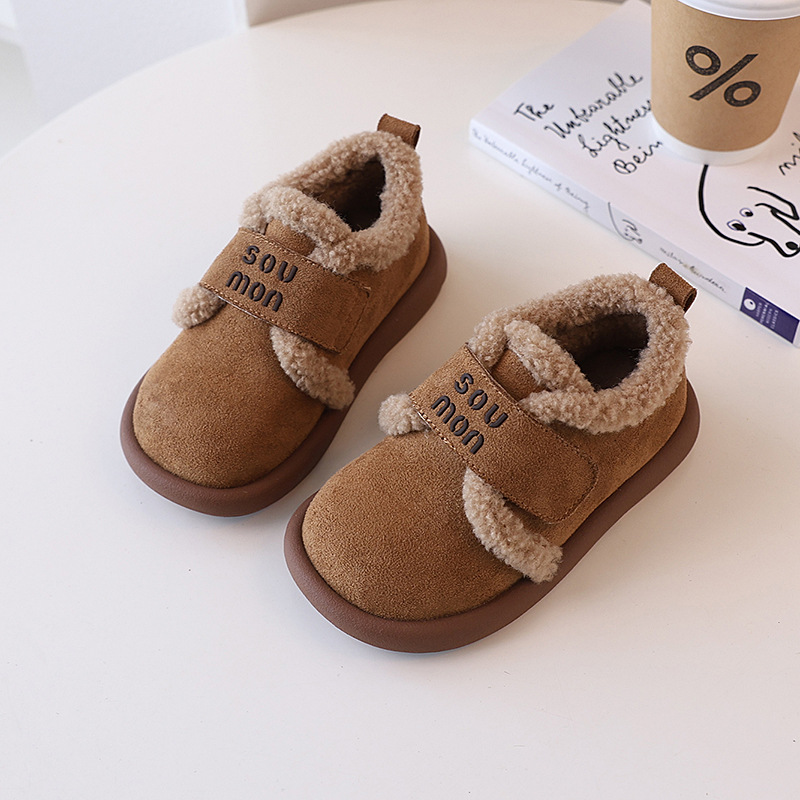 정품 가죽 어린이 면화 여아 운동화 2024 겨울 새 도착 남성 어린이 기모 2 면 신발 캐주얼 신발 아기 신발스토어 가기