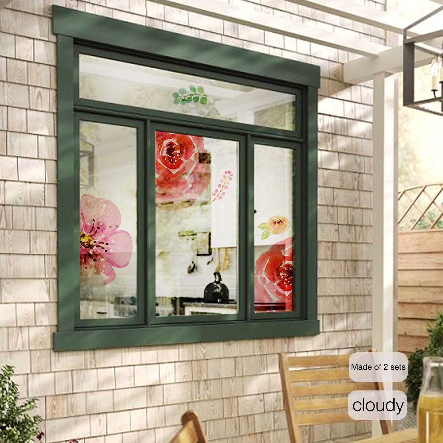 Funlife2024 깊은 핑크 장미 화려한 창 꽃 수채화 투명한 정전기 접착제없는 창 데칼 SE121스토어 가기