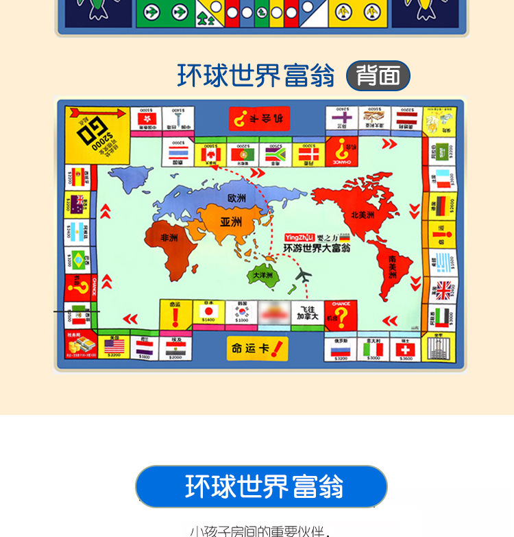 카펫 플라잉 체스 대형 어린이 양면 투인원 모노 폴리 크롤링 매트 파티 퍼즐 게임 매트 장난감스토어 가기