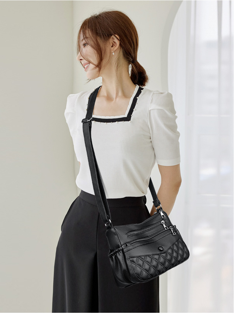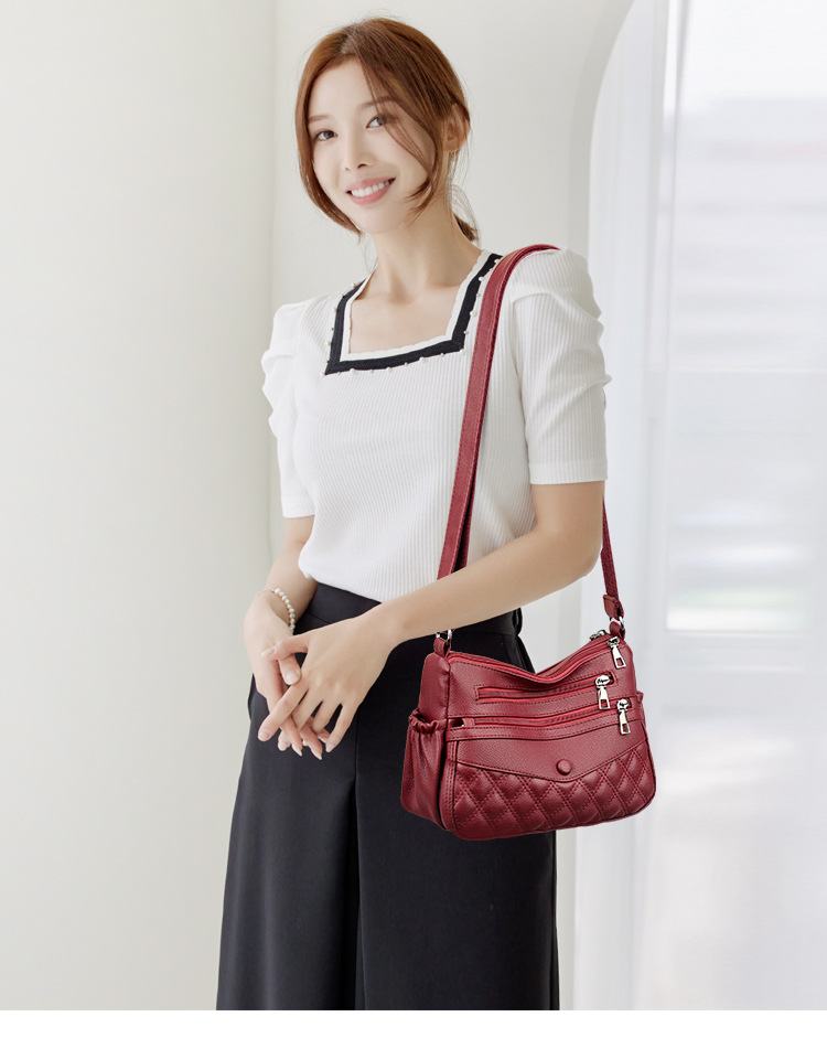 중년 여성 가방 어머니 가방 다층 부드러운 가죽 2024 새로운 올매치 유행 어깨 크로스 바디 시어머니 가방 여성용 가방