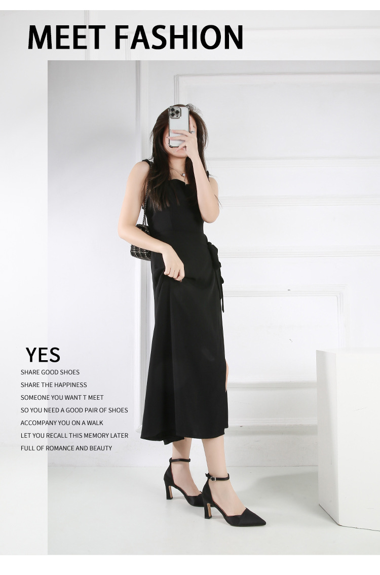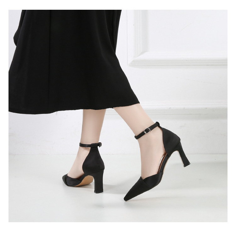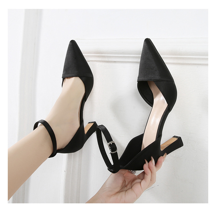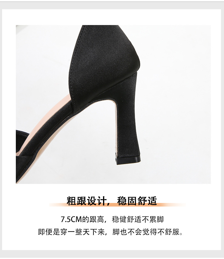 7.5cm 구멍 신발 43 플러스 사이즈 전문 클래식 싱글 레이어 신발 블랙 뾰족한 얕은 하이힐 여성용 스틸레토 힐 새틴 여성스토어 가기