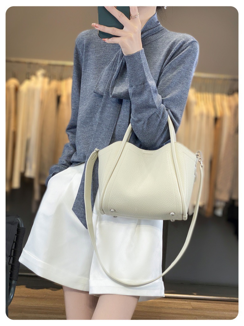 봄과 가을 우아한 여성 리본 양모 블렌드 스웨터 유행 외신베이스 그레이 크루 넥 스웨터스토어 가기