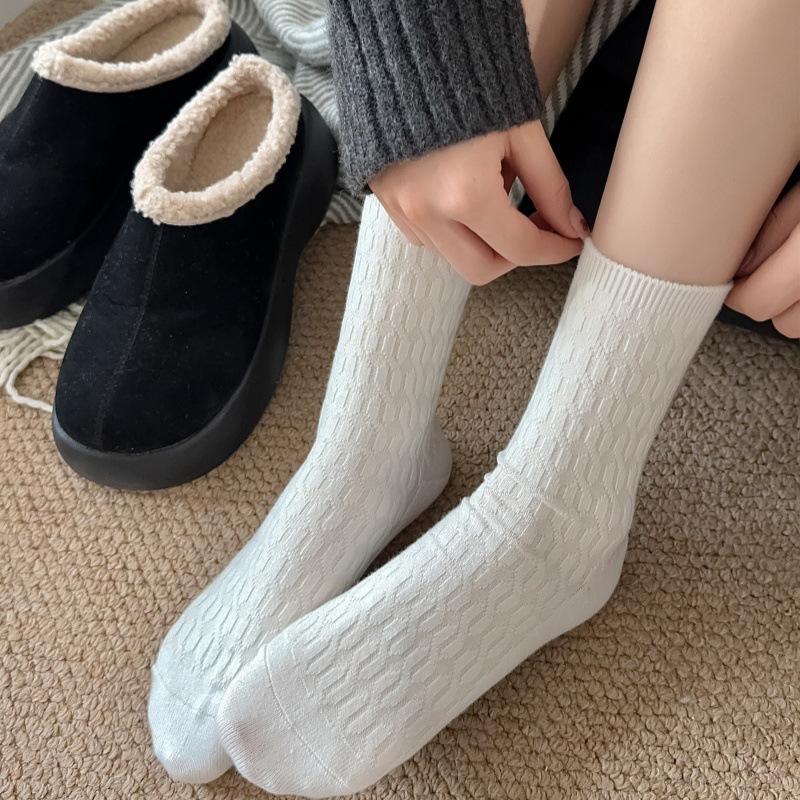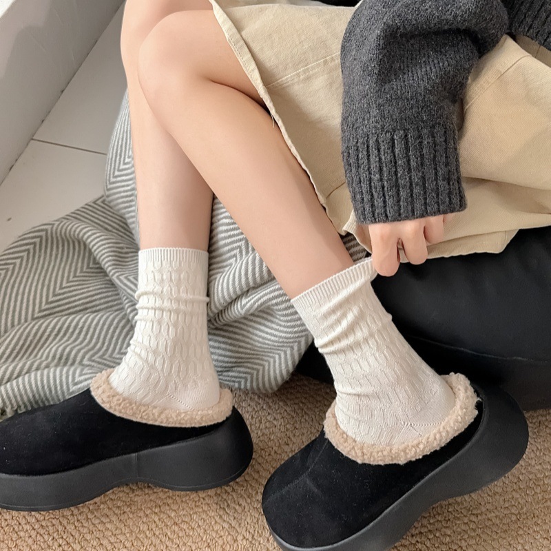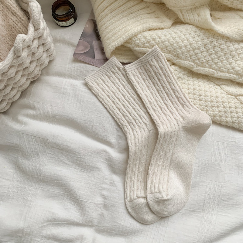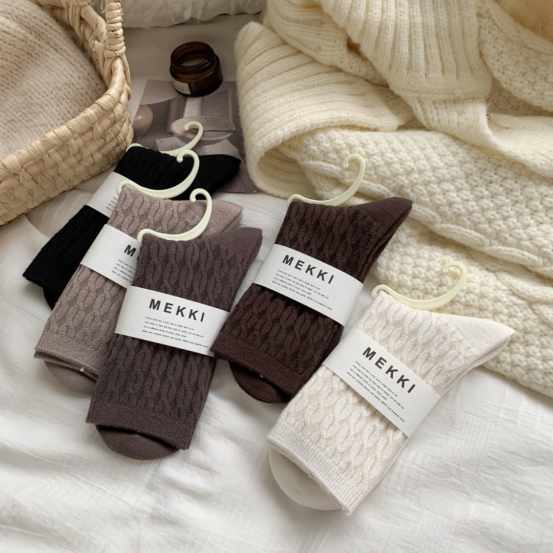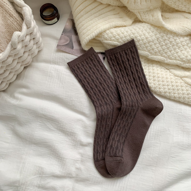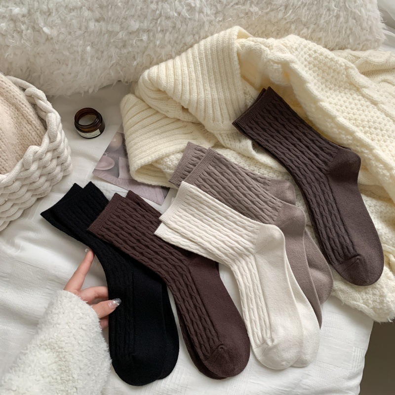 따뜻한 가을과 겨울 다크 브라운 스타일 작은 트위스트 캐시미어 여성용 미드 튜브 양말 부드러운 양말 두껍고 섬세한 일본 스택 양말