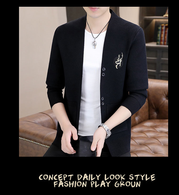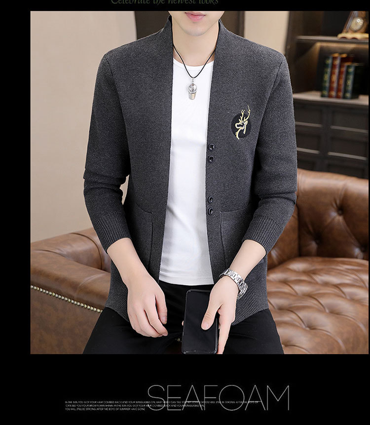 고급 니트 카디건 남자 코트 가을 새로운 올 매치 롱 스웨터 패셔너블 핸섬 남성 캐주얼 스웨터스토어 가기